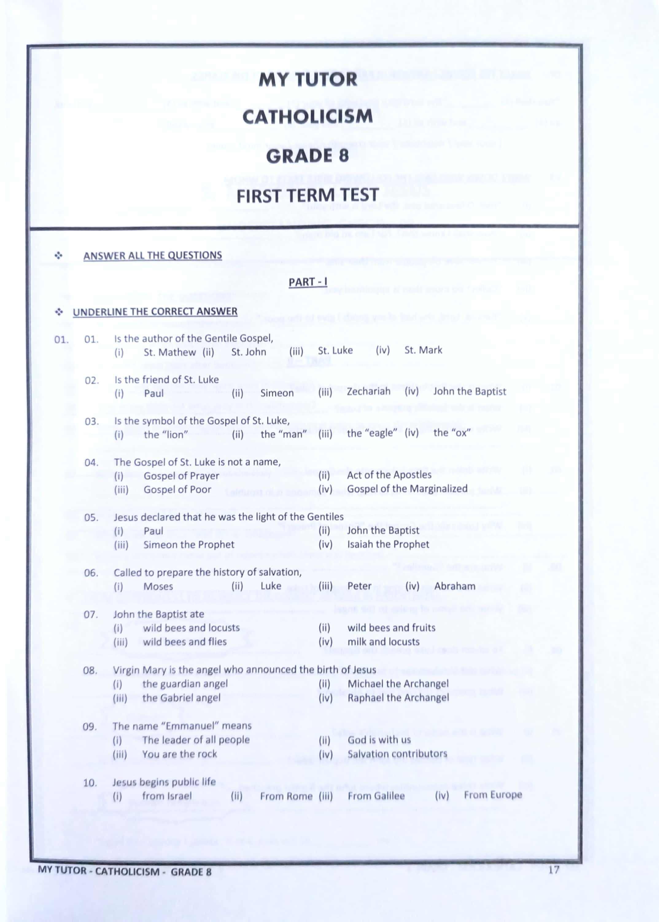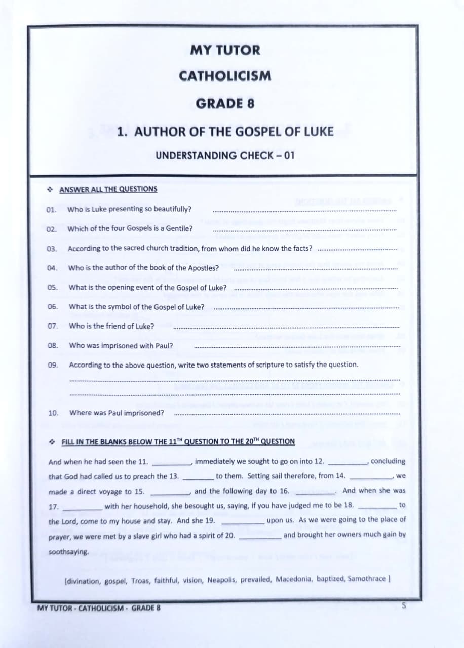 • Subject: Catholic - කතෝලික ධර්මය