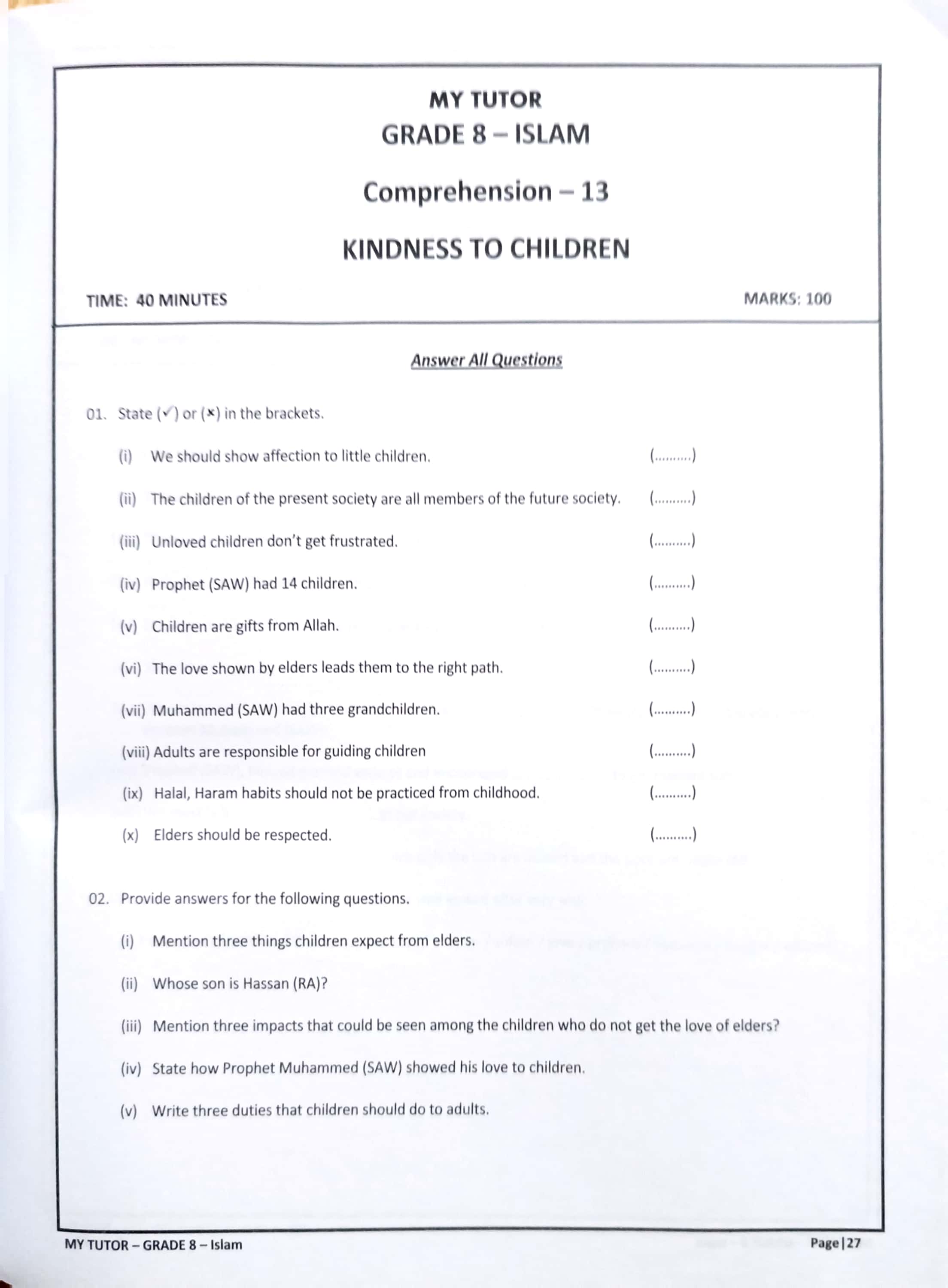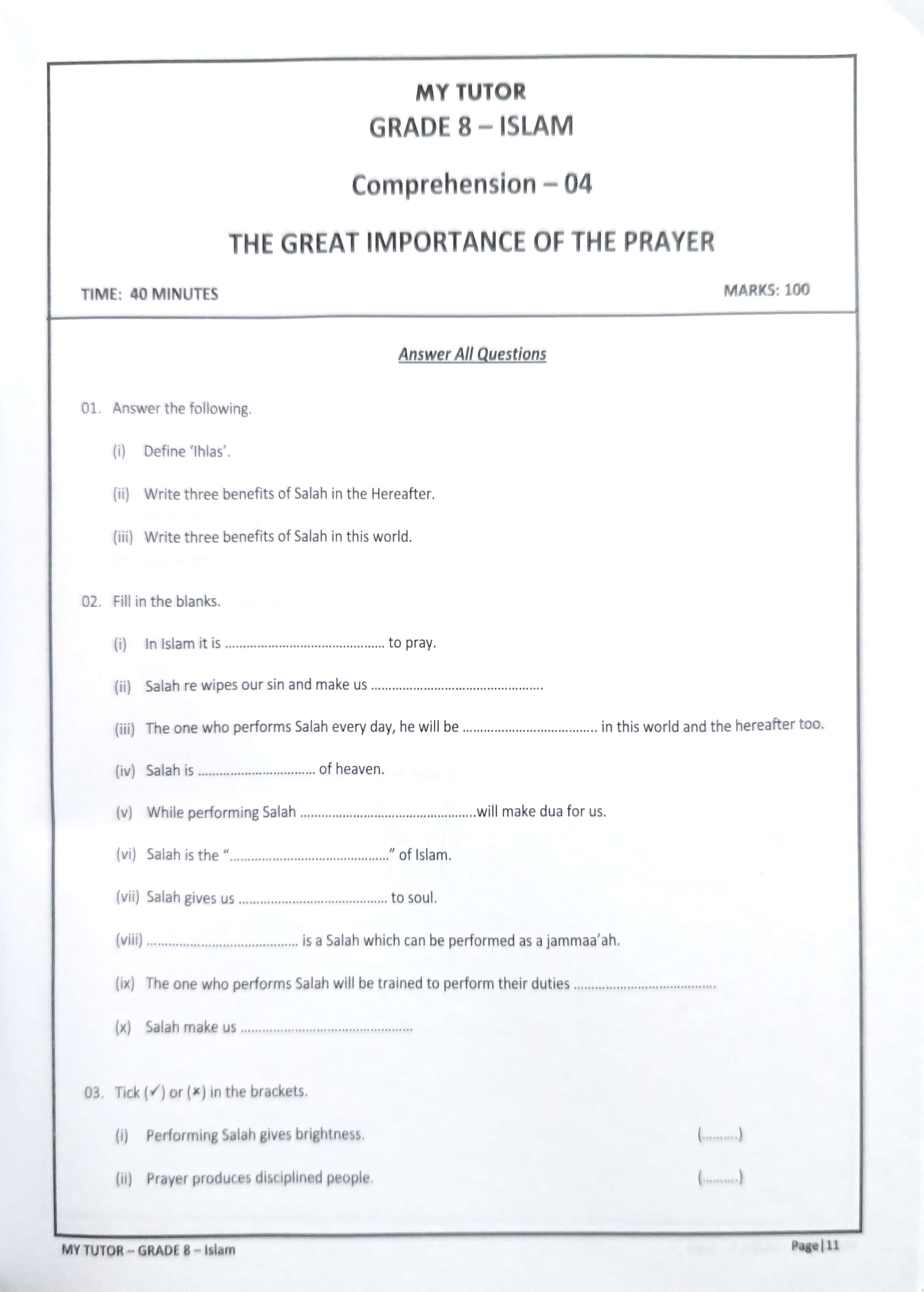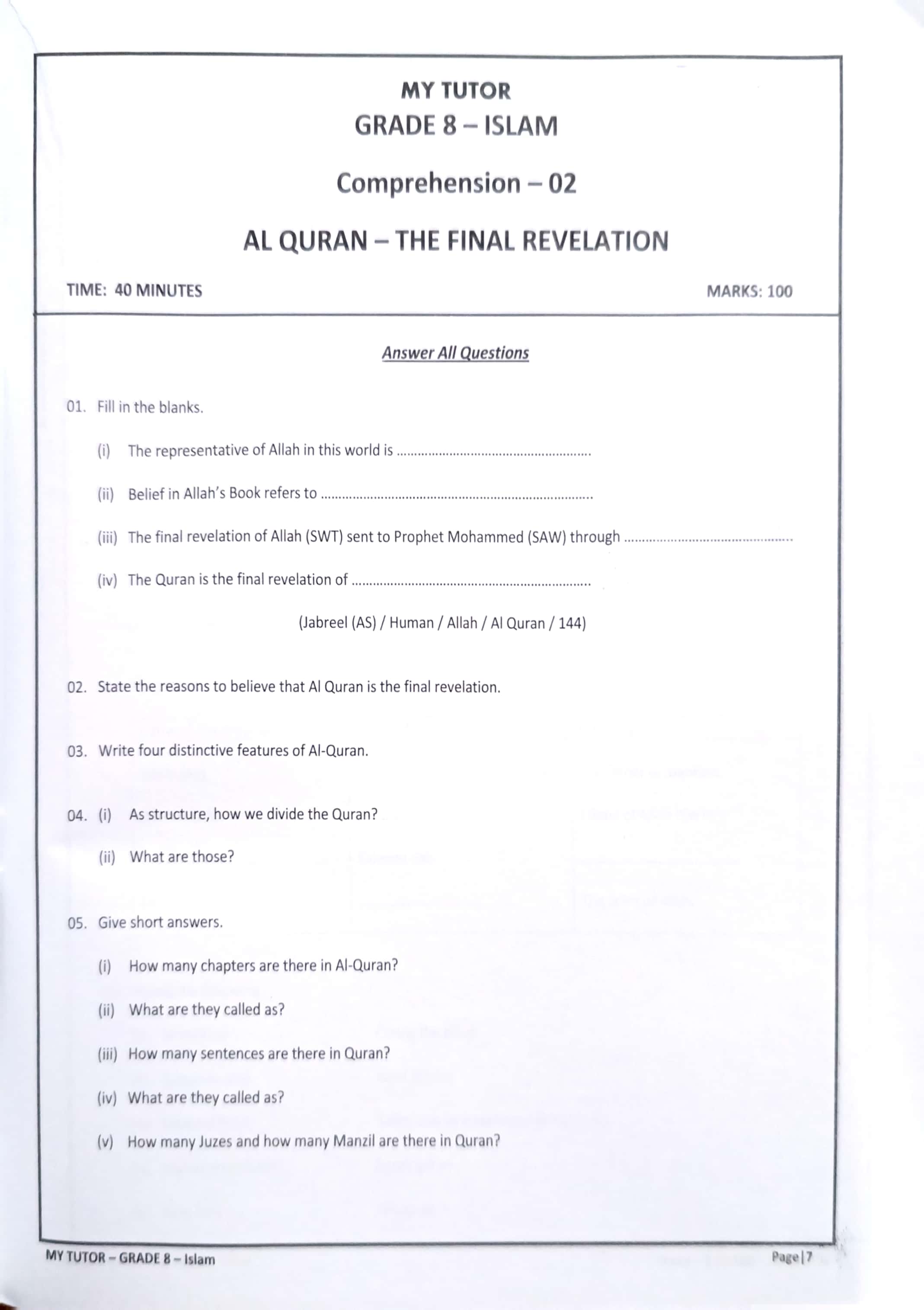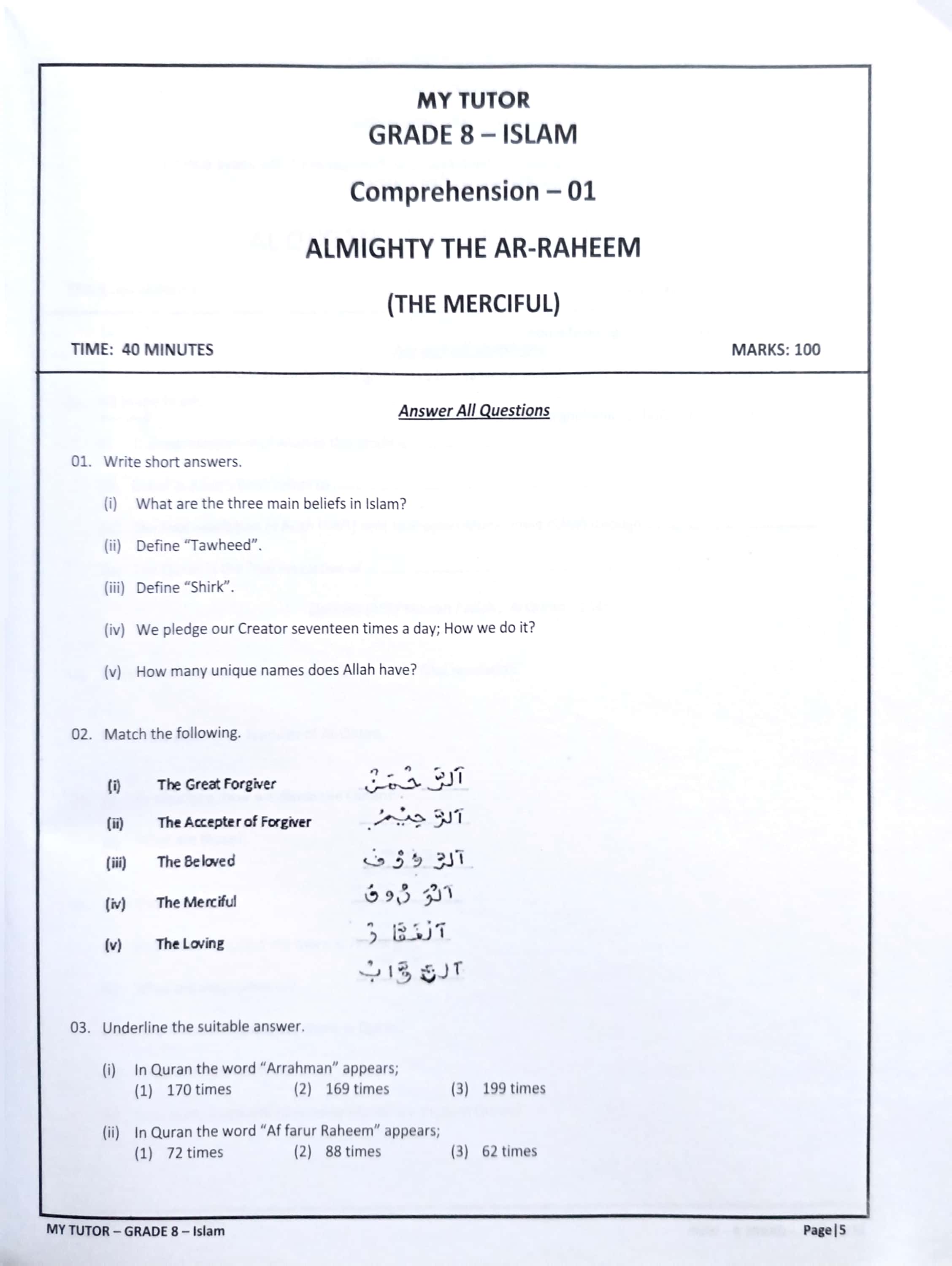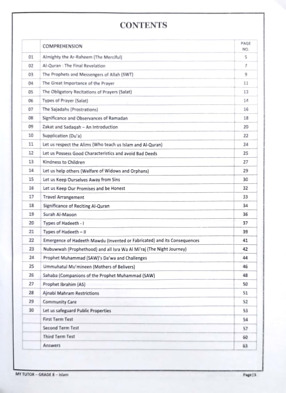 MY TUTOR GRADE 8 ISLAM WORK BOOK