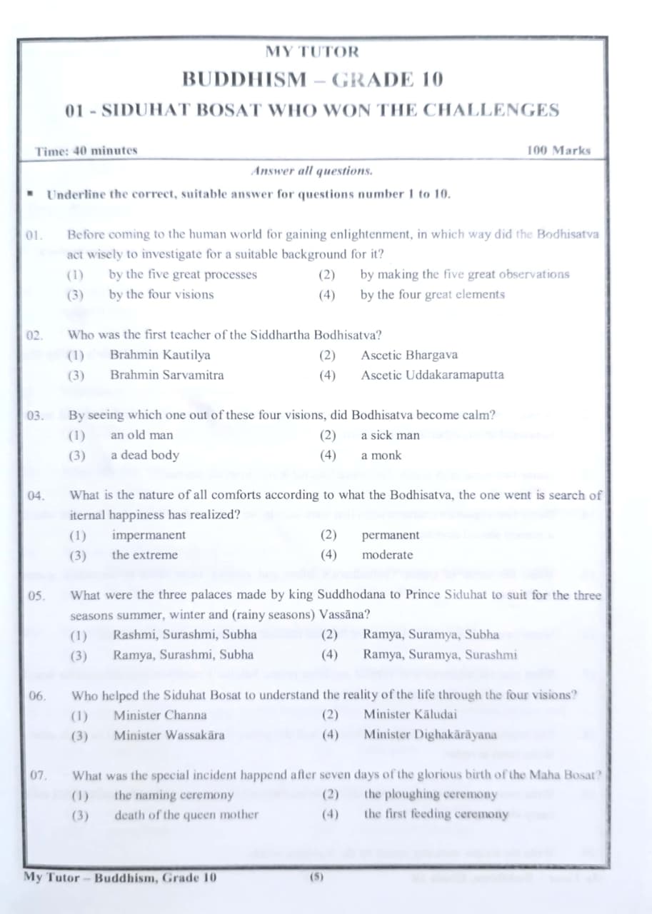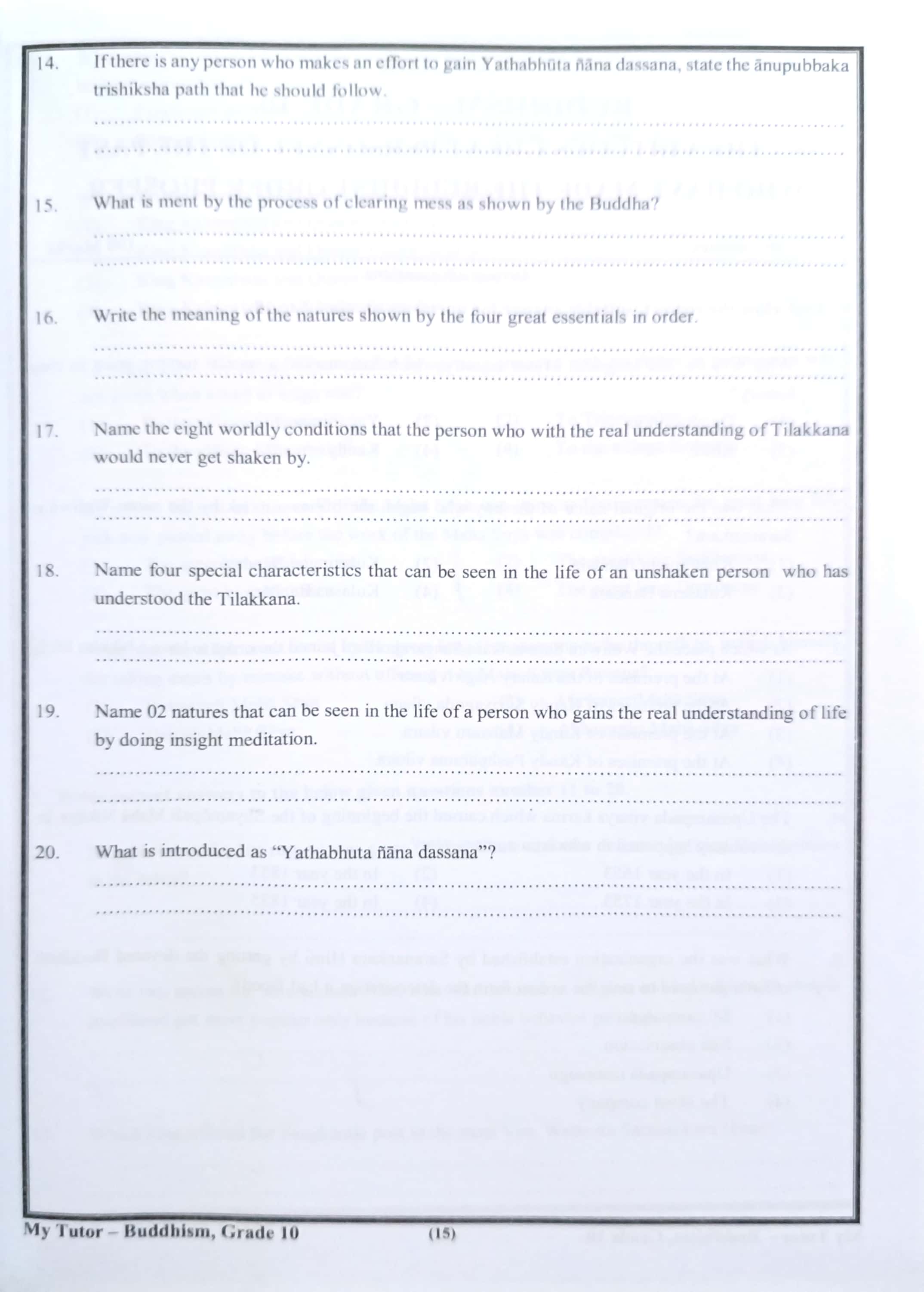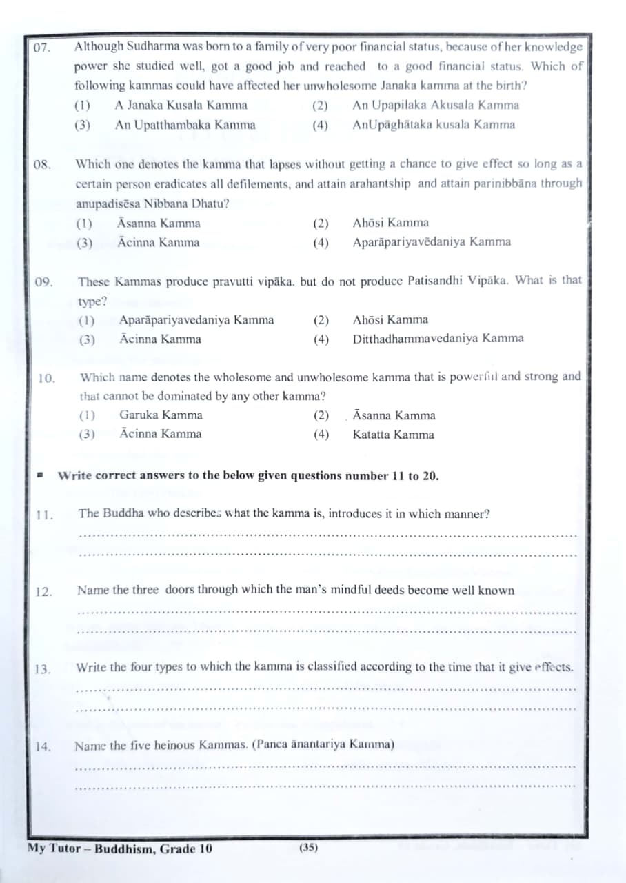 MY TUTOR GRADE 10 BUDDHISM WORK BOOK