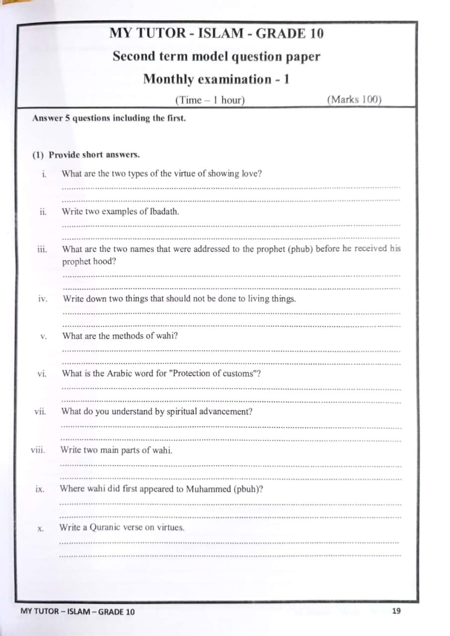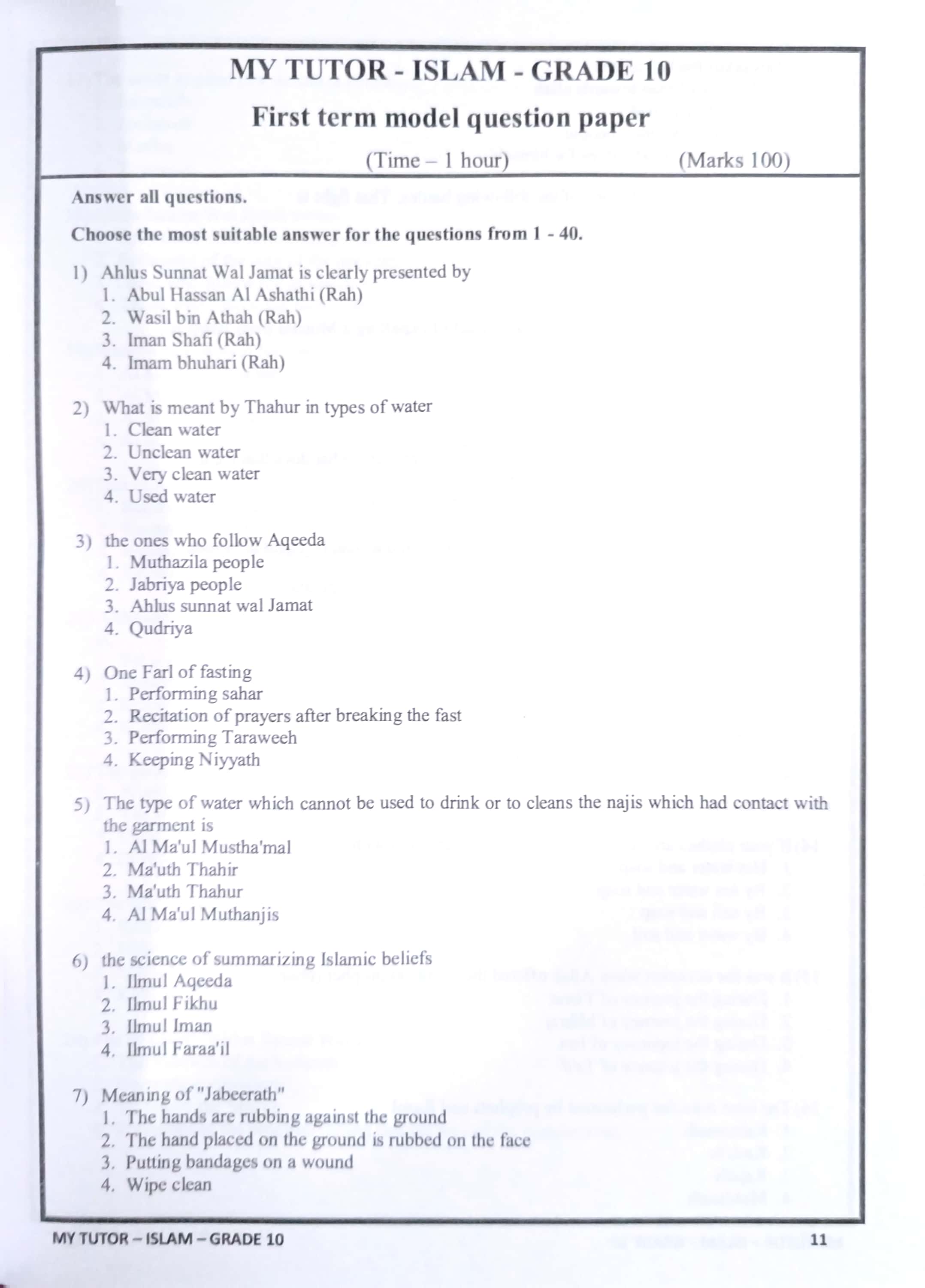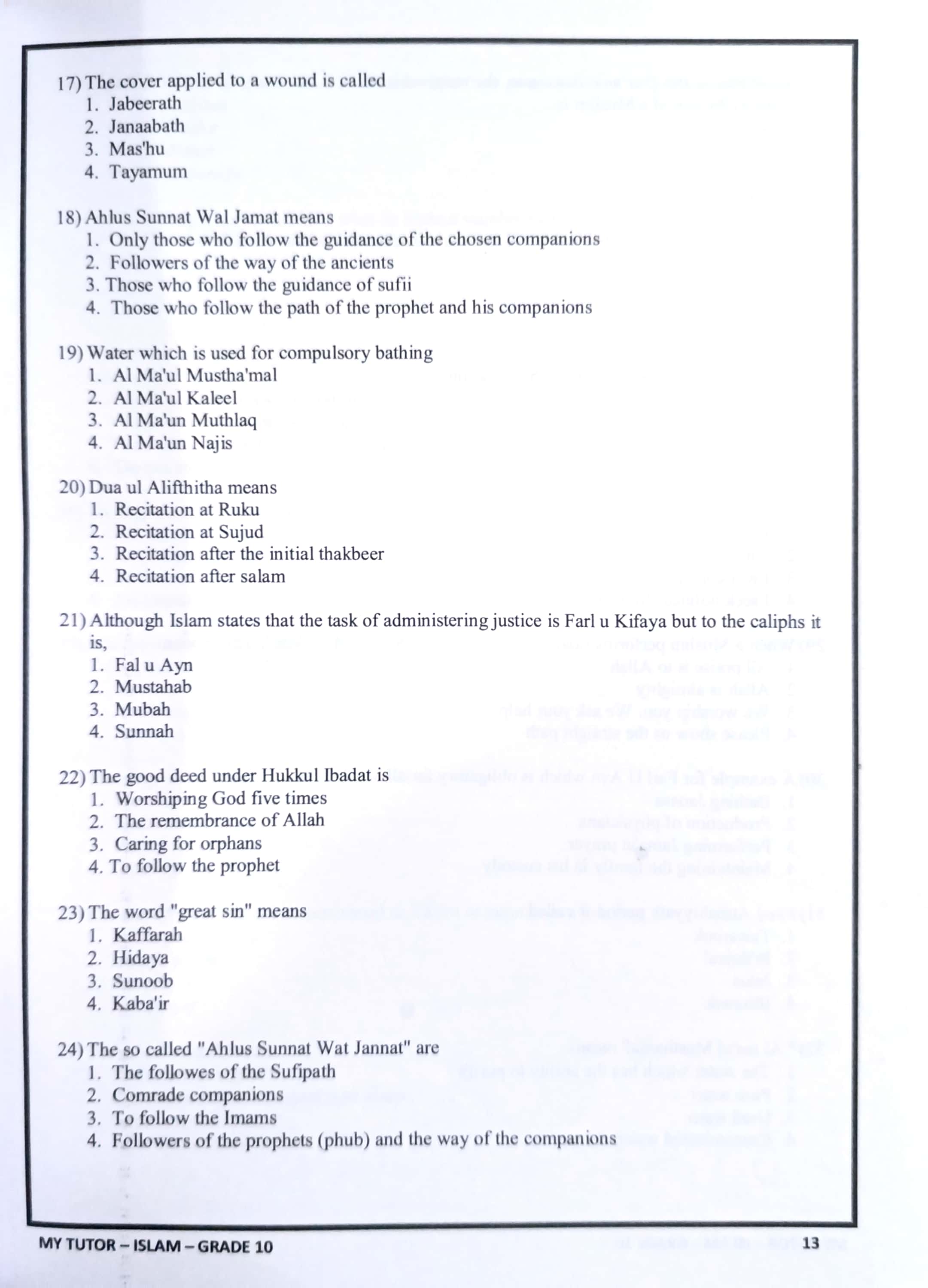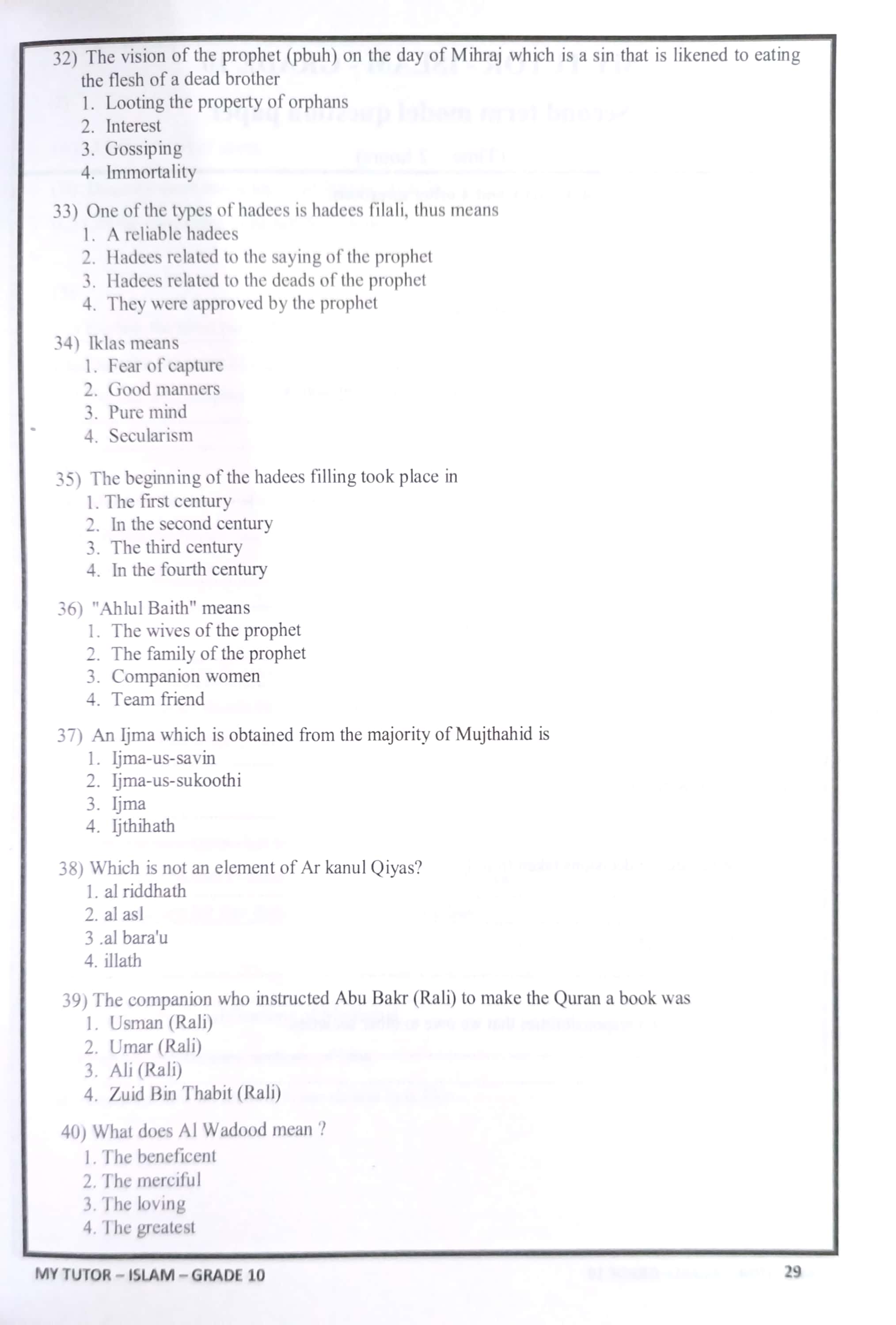 MY TUTOR GRADE 10 ISLAM WORK BOOK