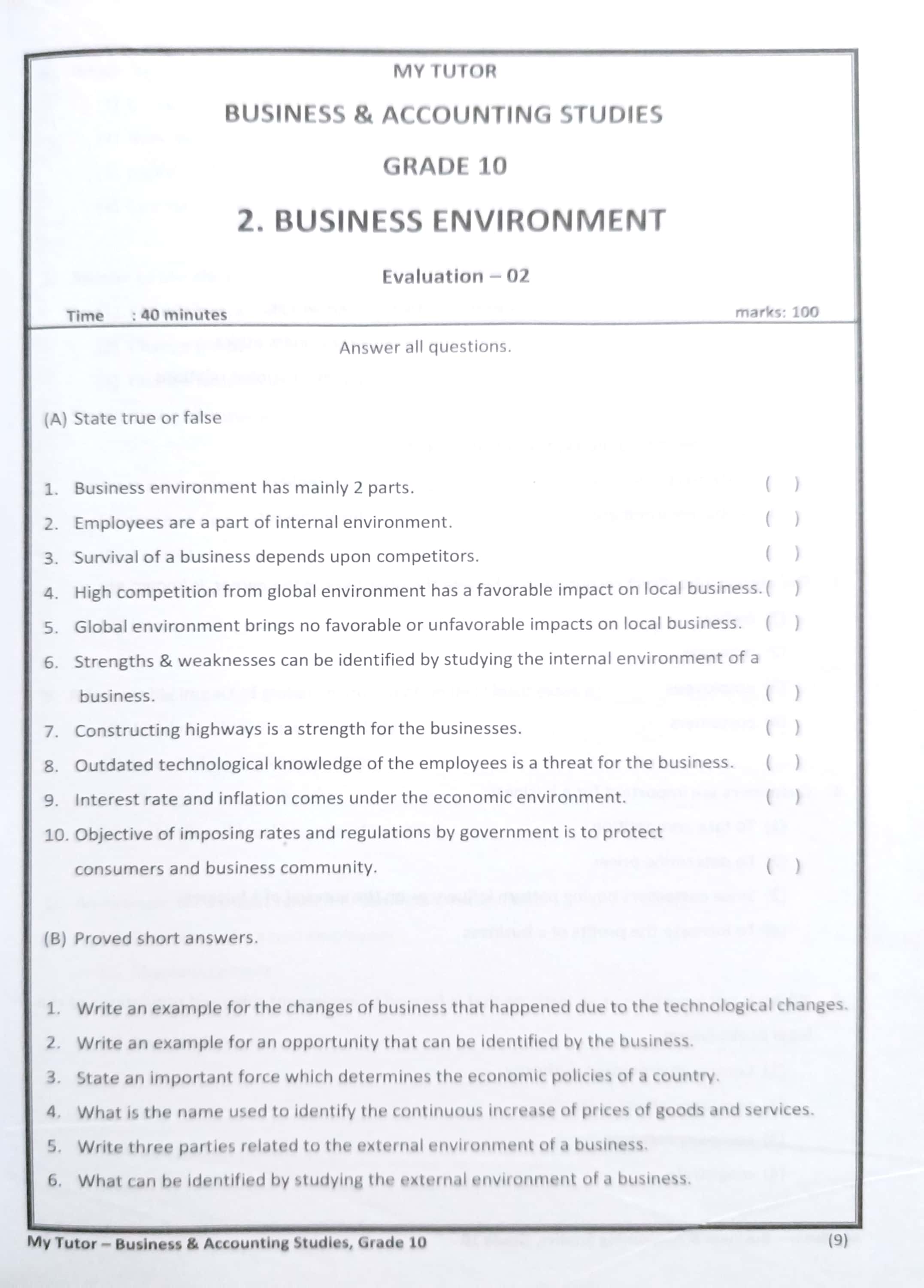 • Grade: Grade 10 - 10 ශ්‍රේණිය