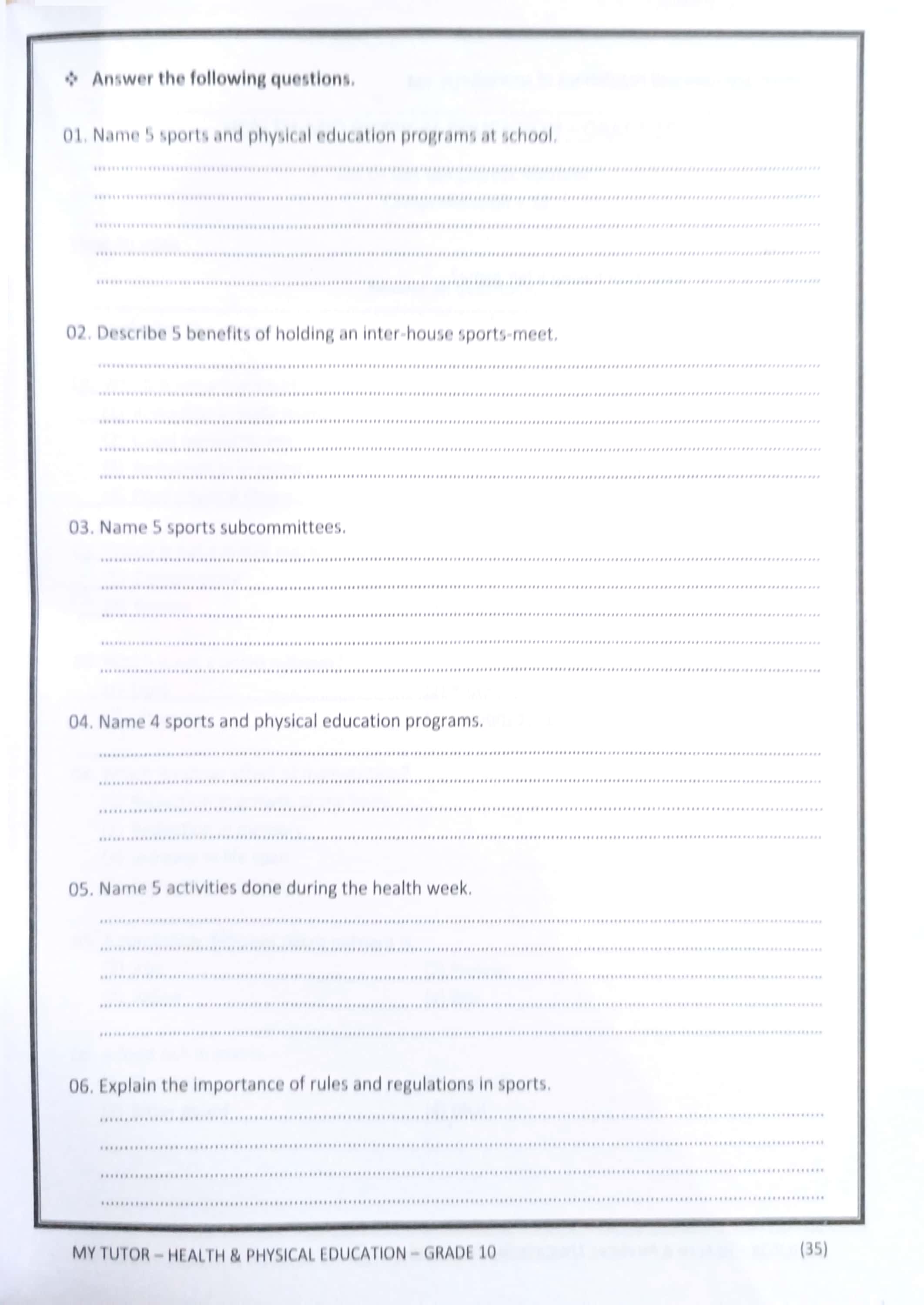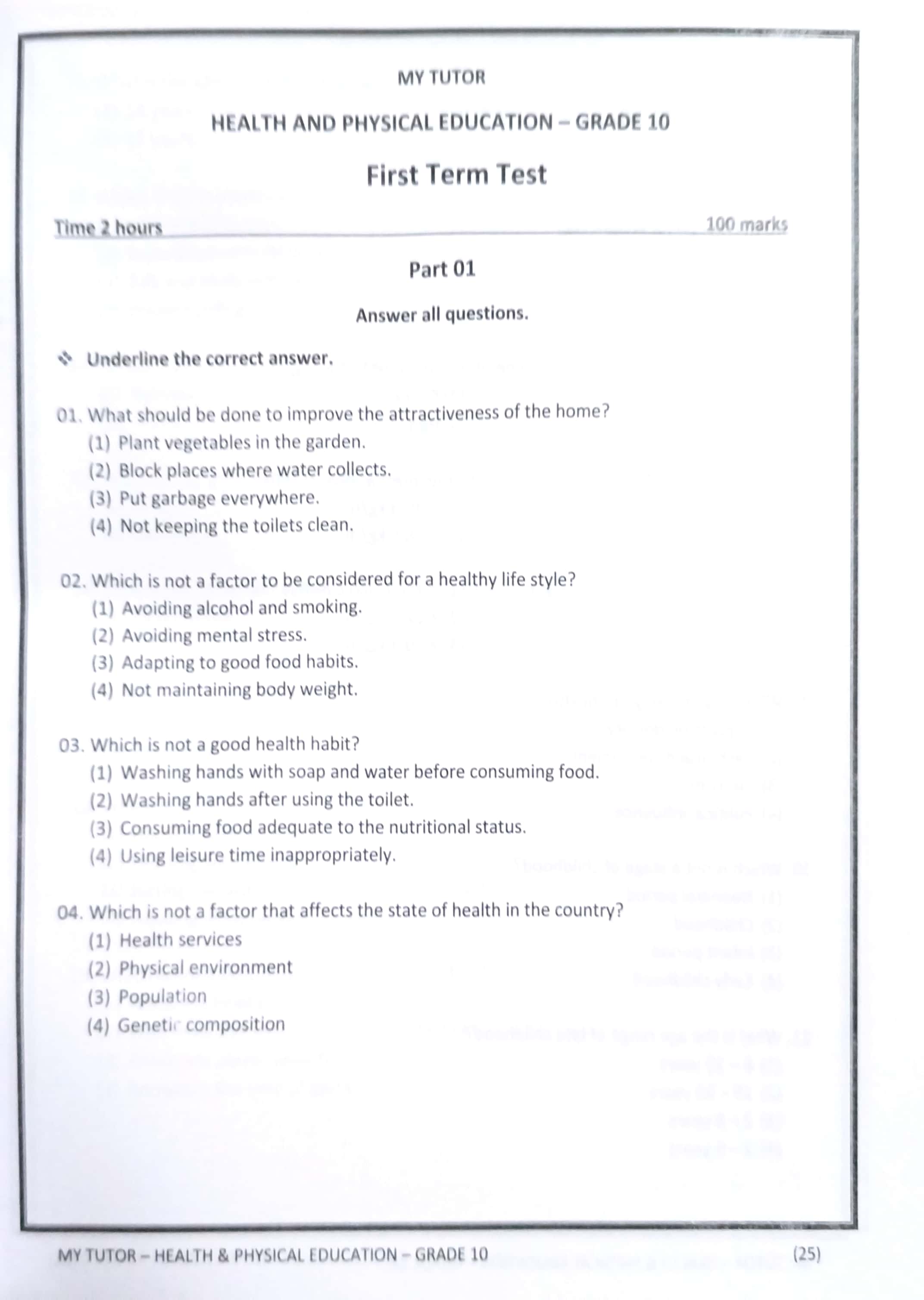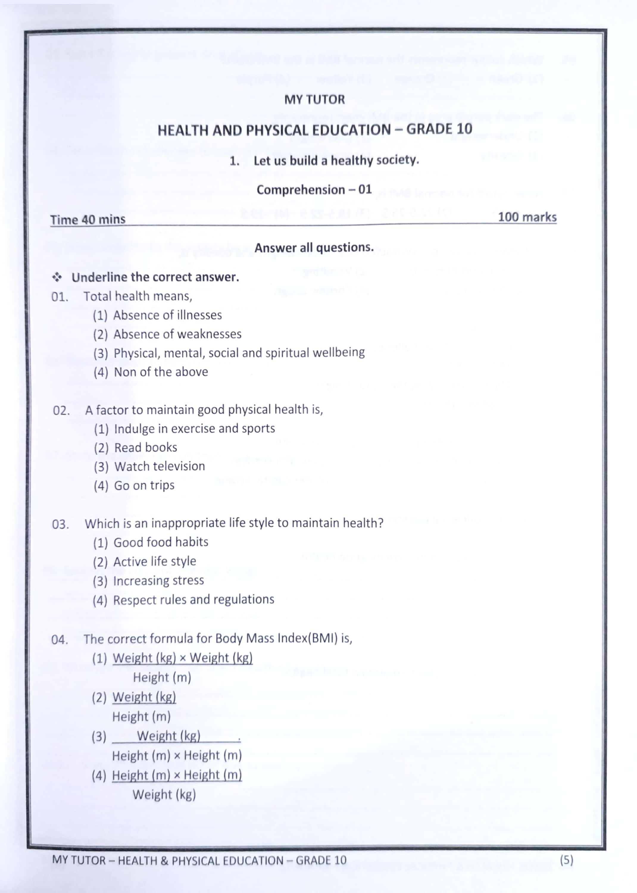 MY TUTOR GRADE 10 HEALTH WORK BOOK