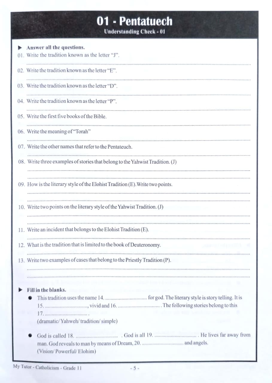 MY TUTOR GRADE 11 CATHOLICISM WORK BOOK