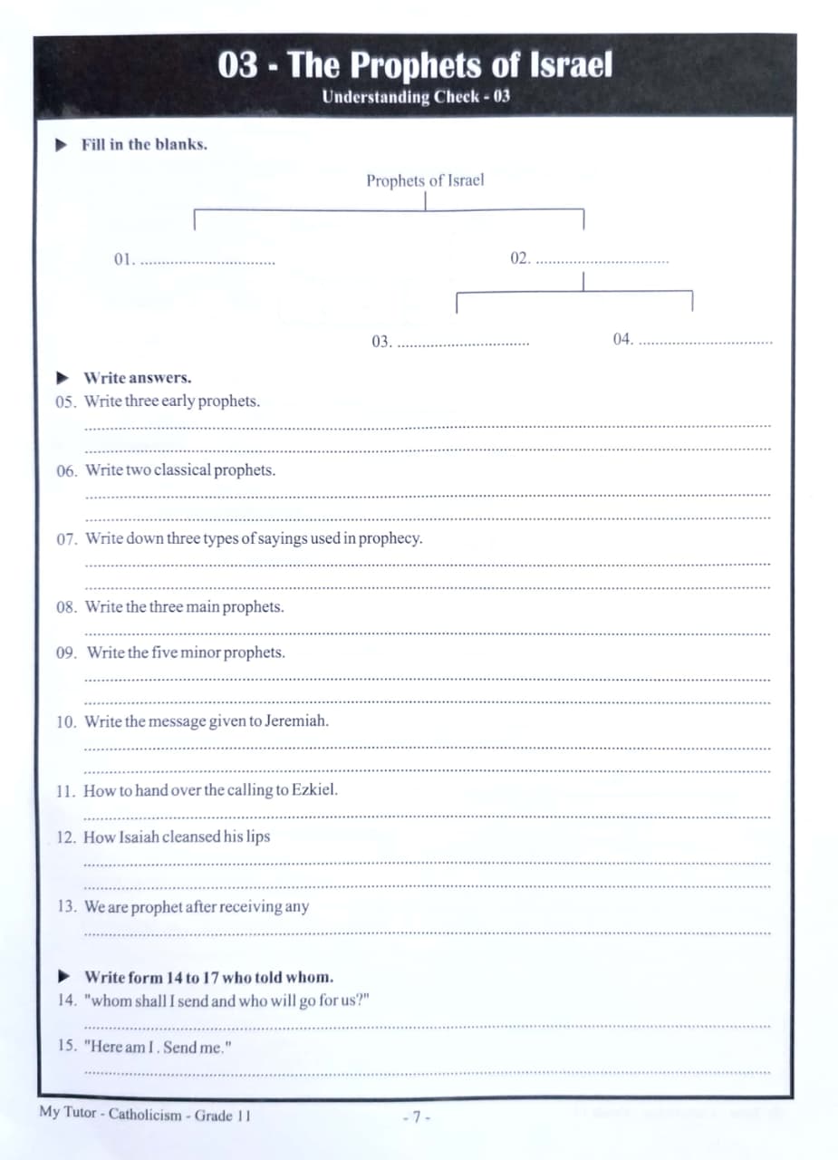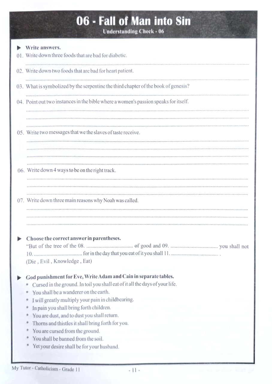 • Subject: Catholic - කතෝලික ධර්මය