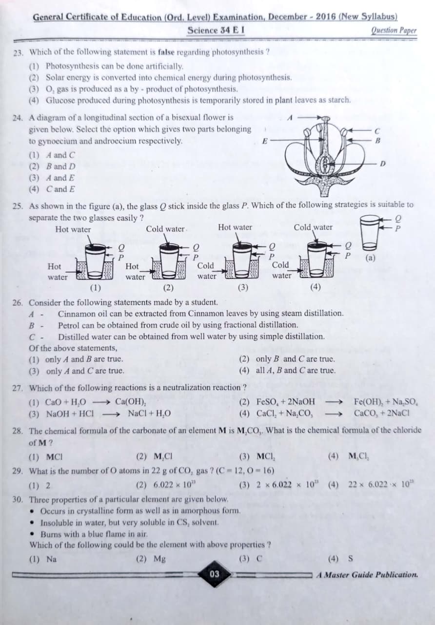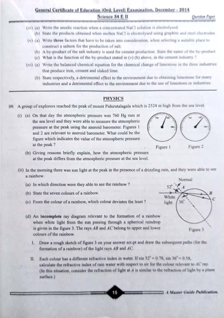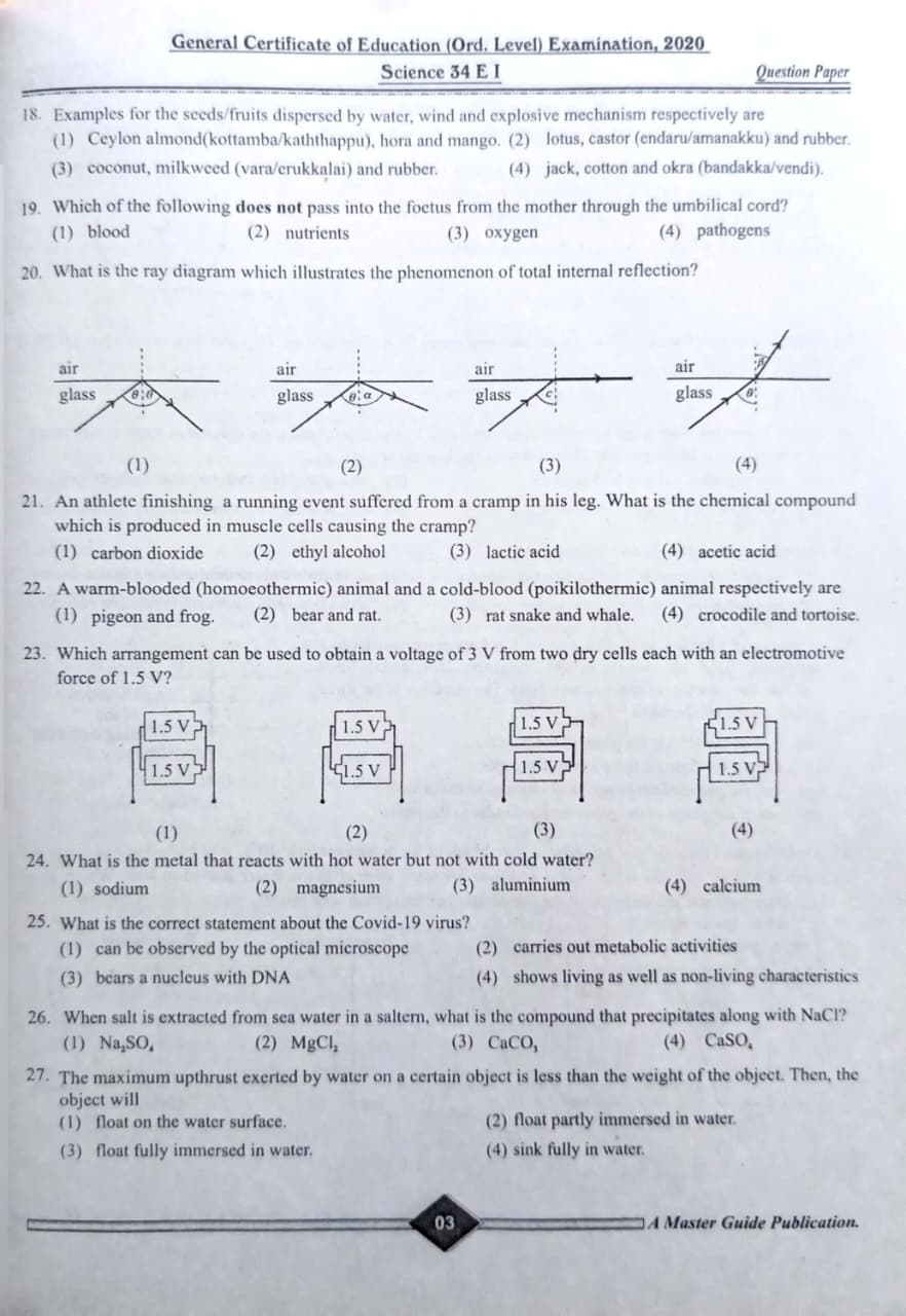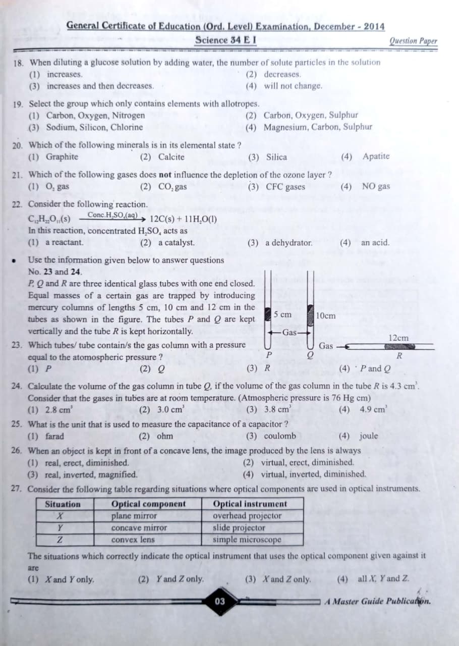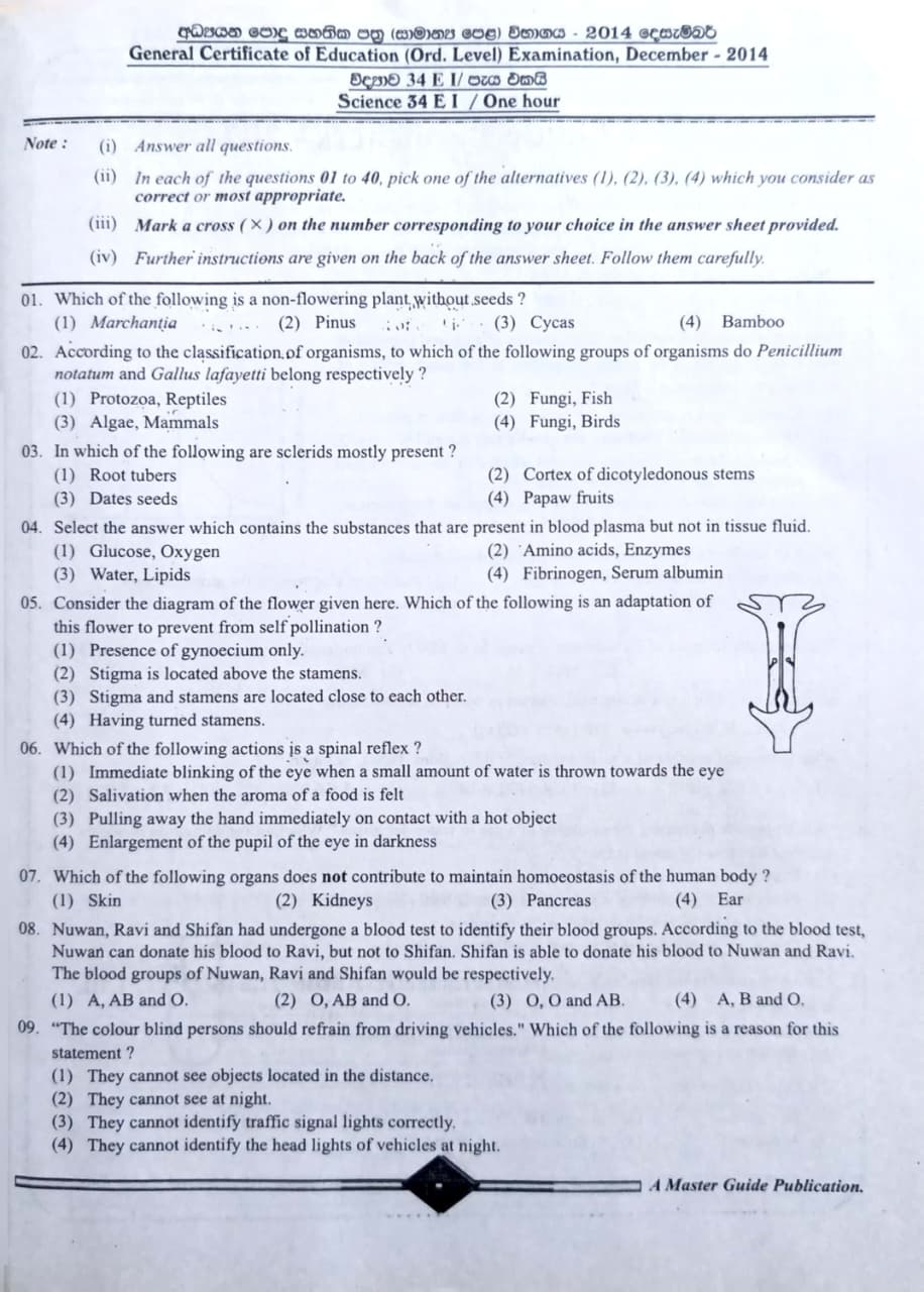 G.C.E OL Science Past Paper and Answer Muster Guide