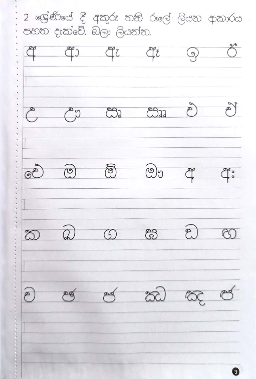 මුතු අකුරු සිසු පැවරුම් සිංහල 2 ශ්‍රේණිය