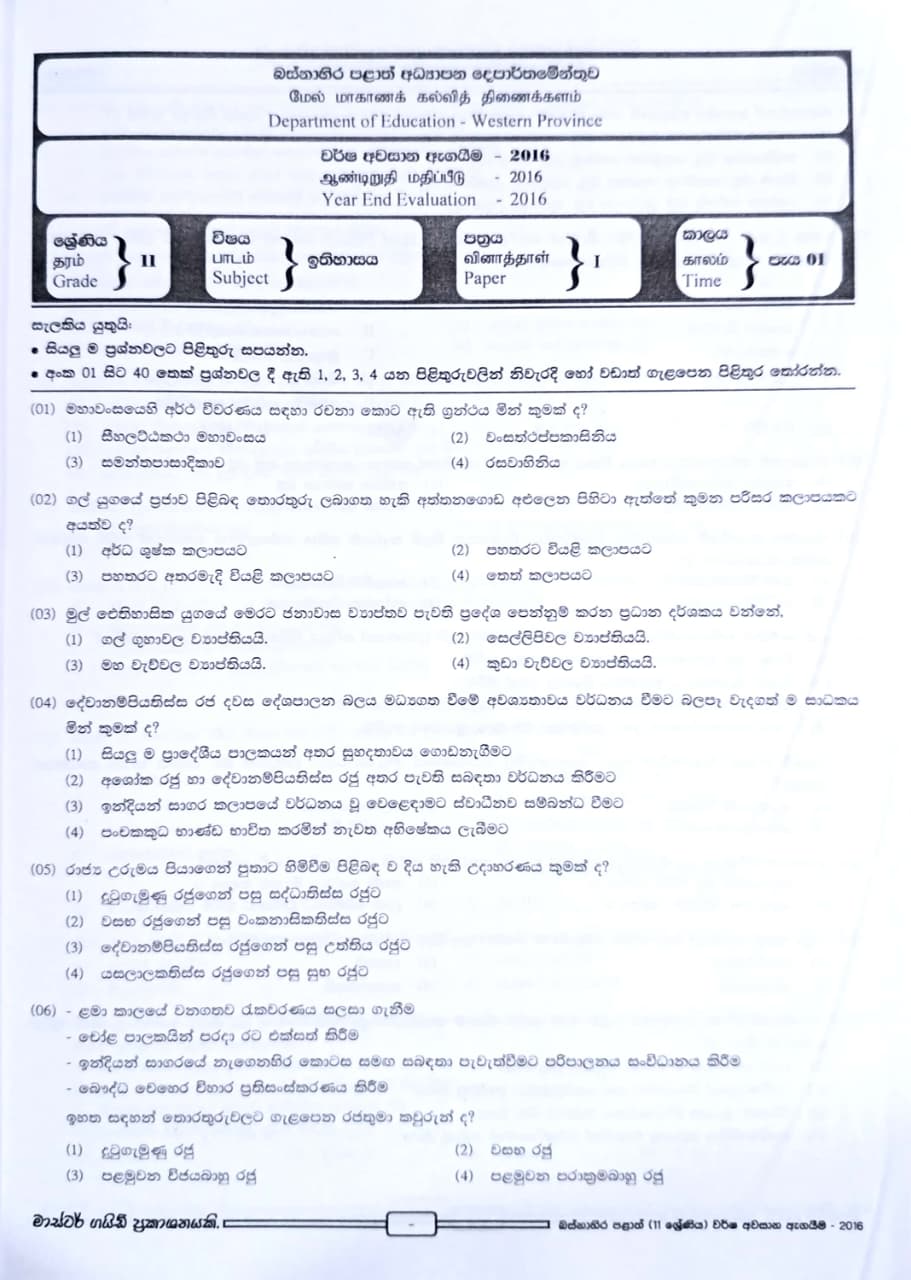 • Subject: History - ඉතිහාසය