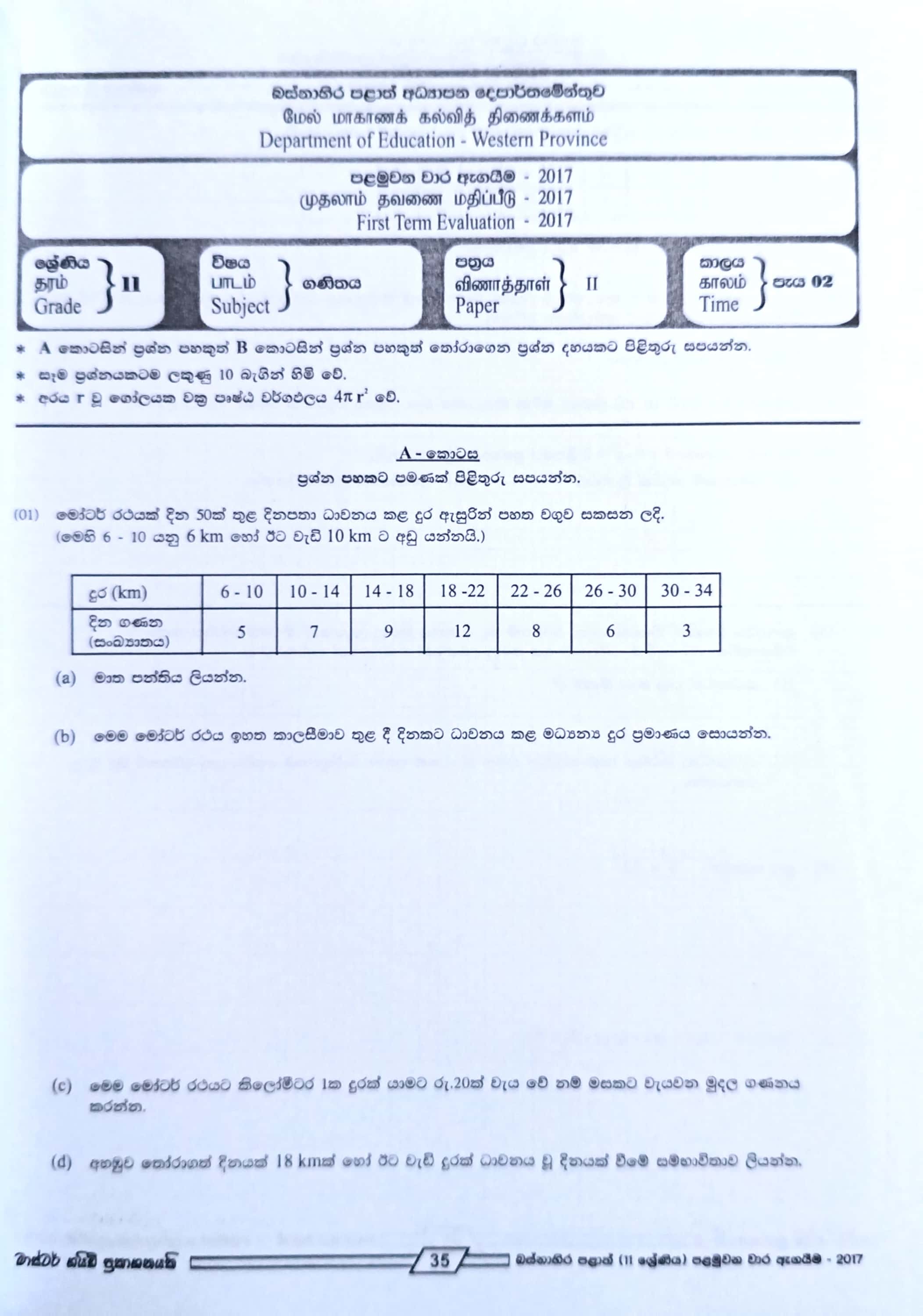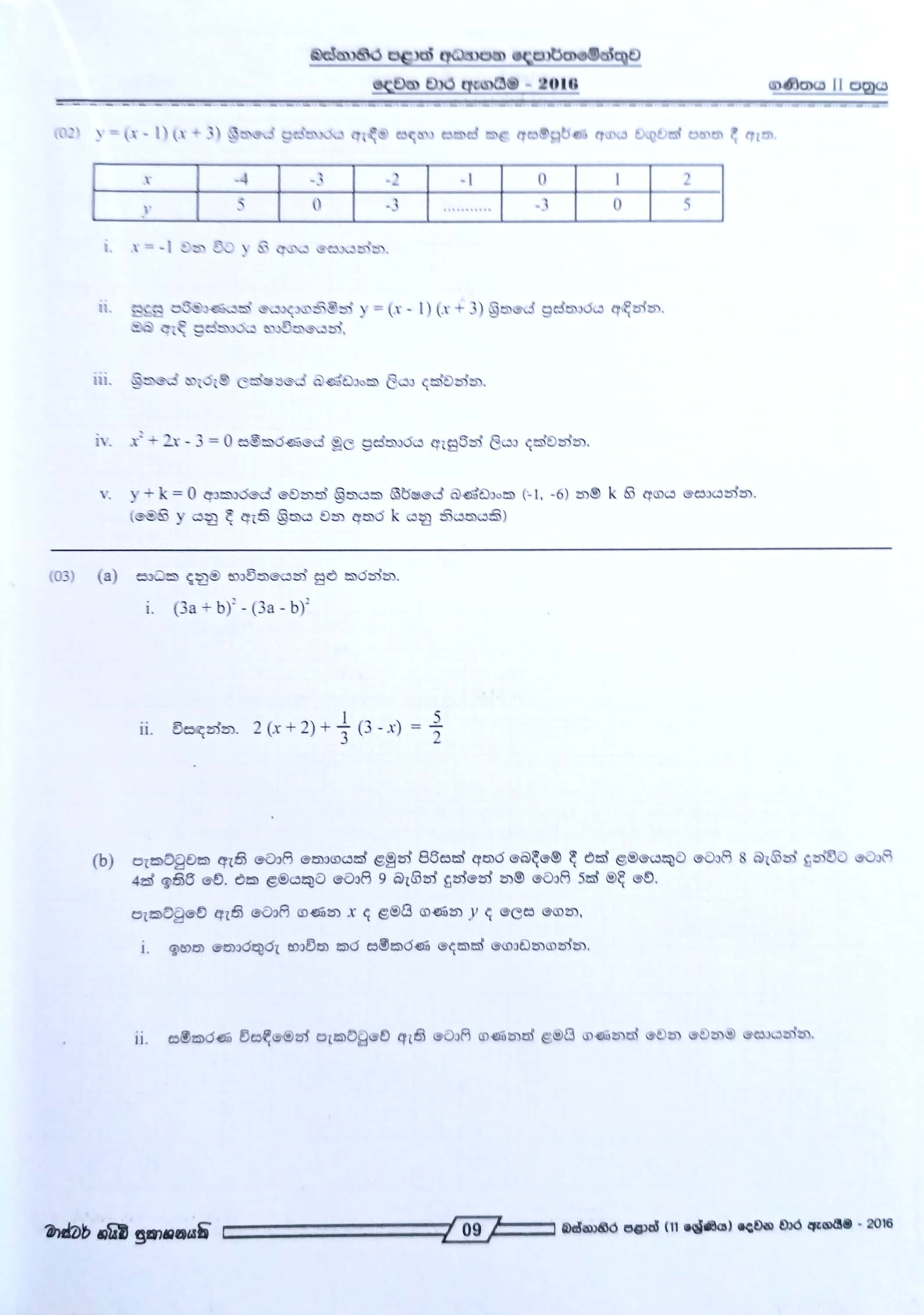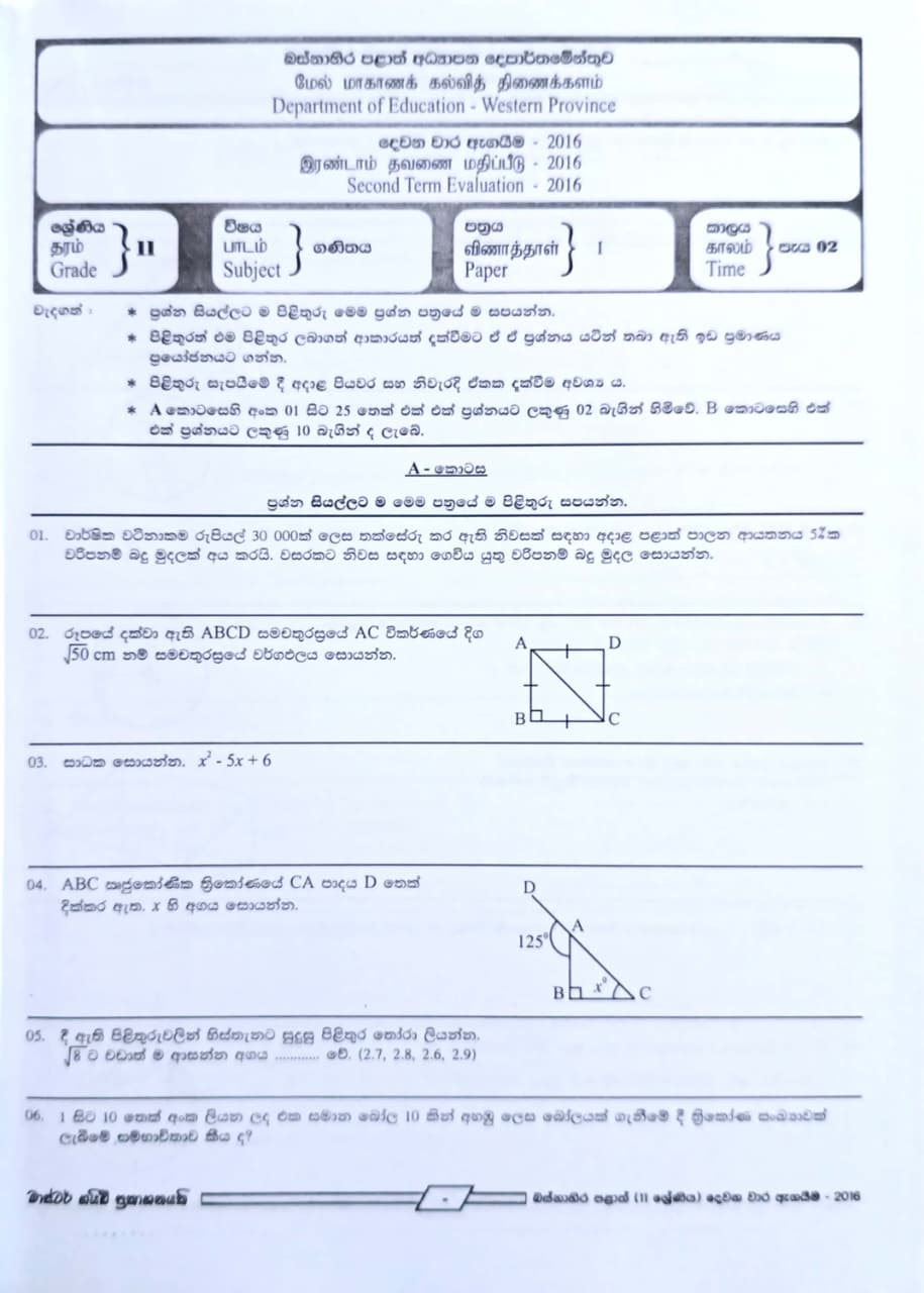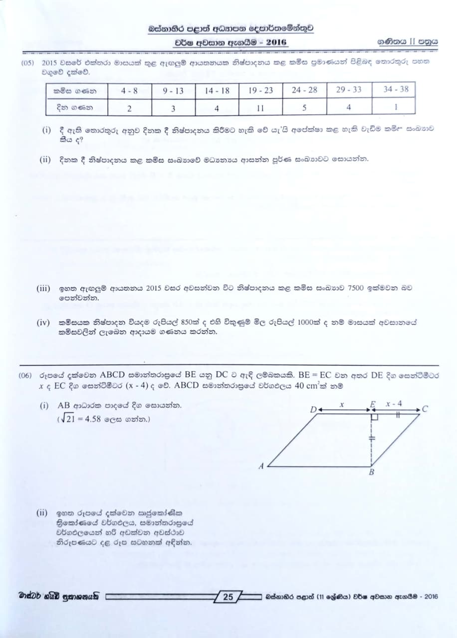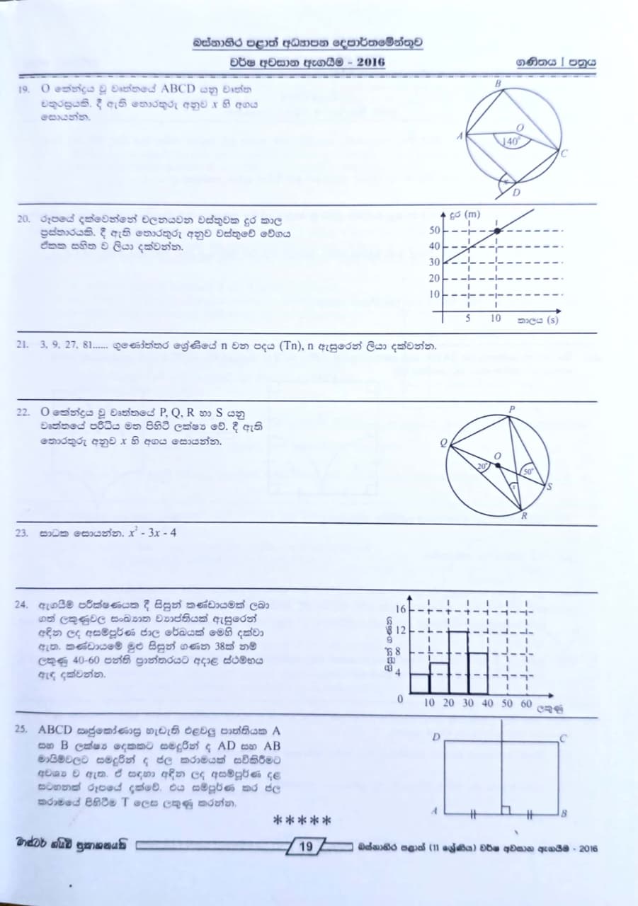 • Subject: Mathematics - ගණිතය