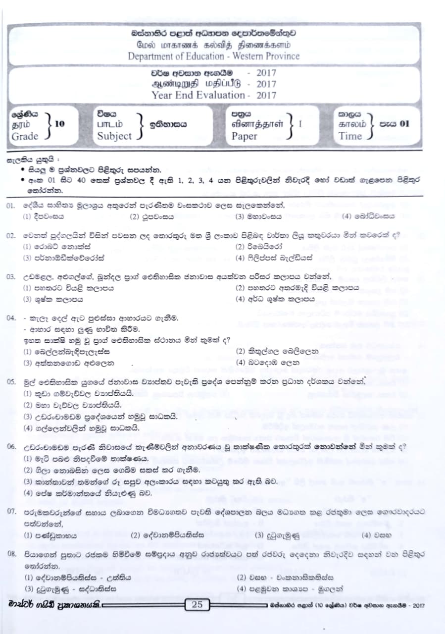 10 ශ්‍රේණිය ඉතිහාසය බස්නාහිර පළාත් මස්ටර් ගයිඩ්