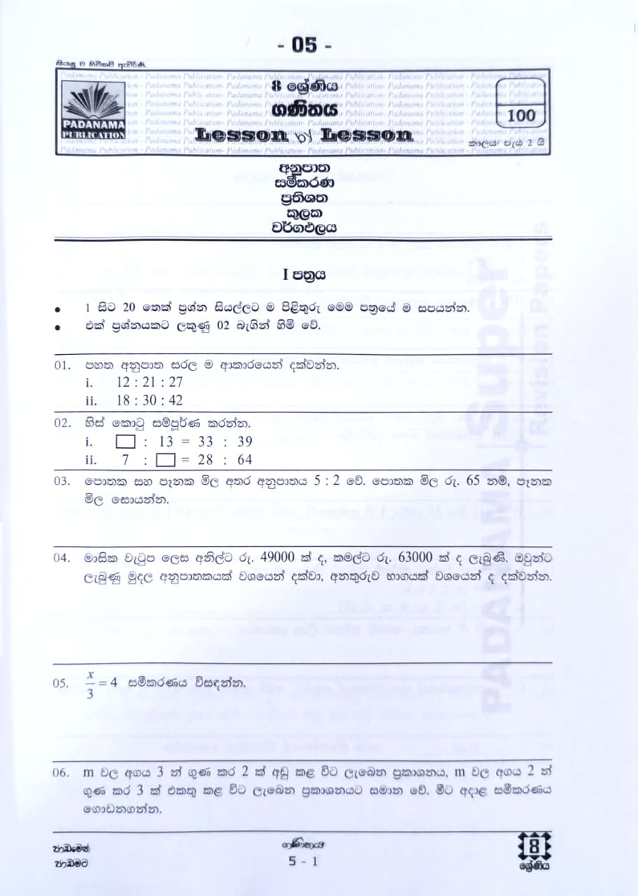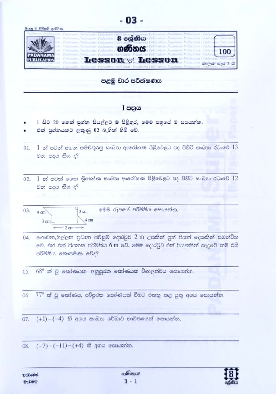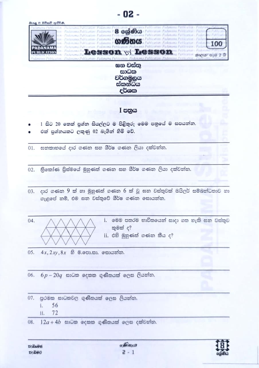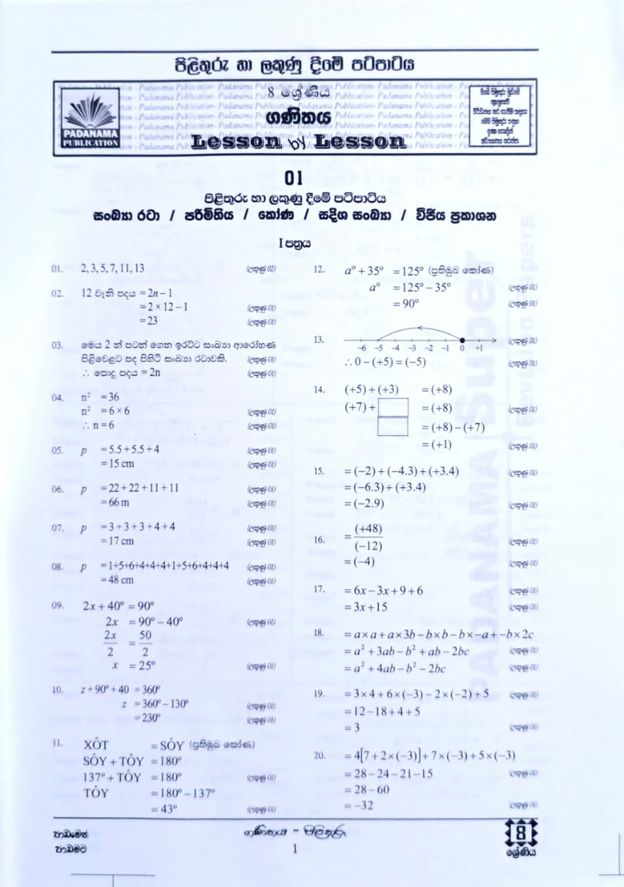8 ශ්‍රේණිය ගණිතය පාඩමෙන් පාඩමට