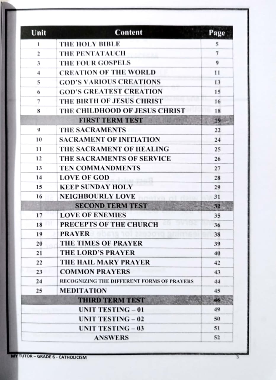 • Subject: Catholic - කතෝලික ධර්මය
