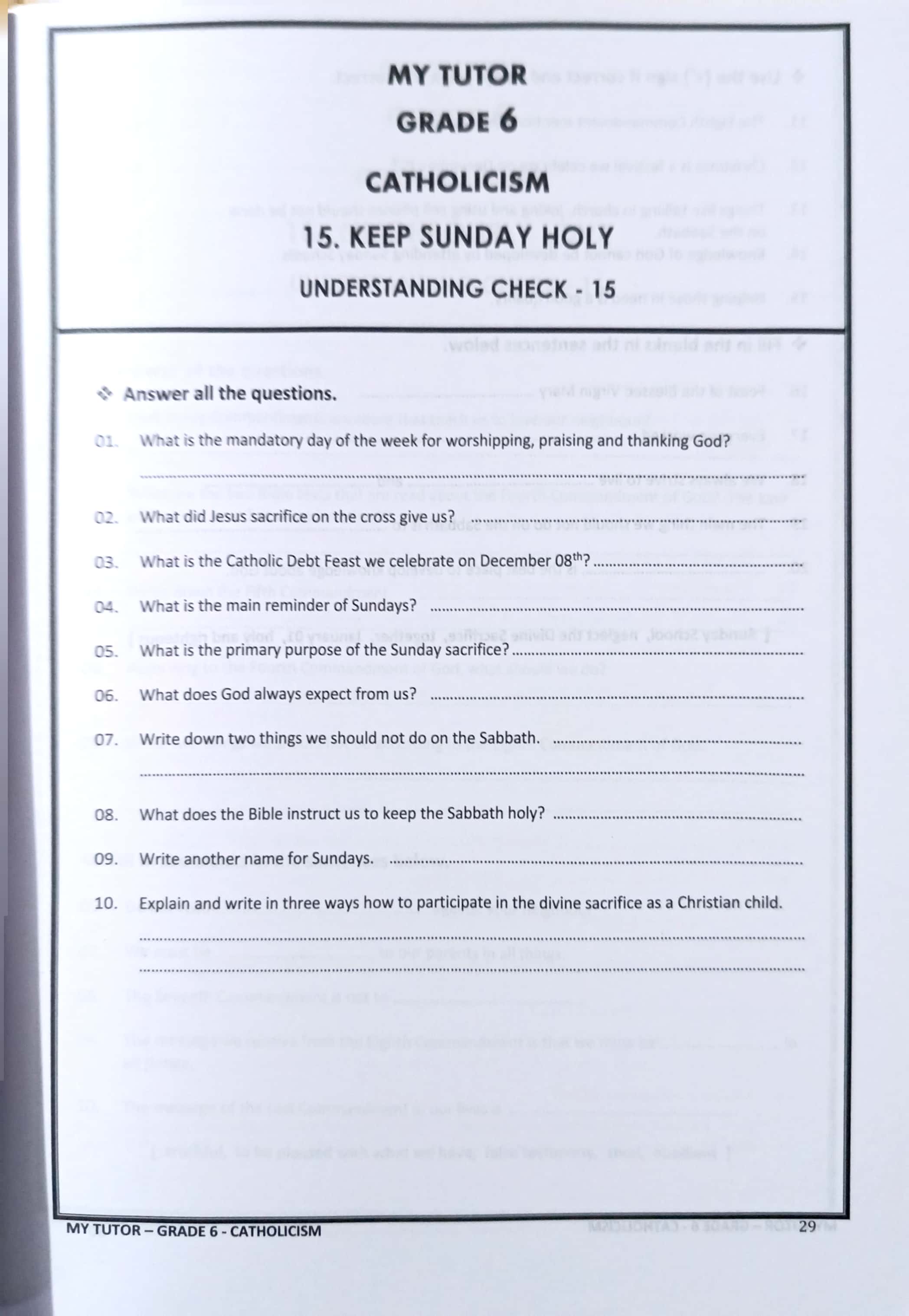 MY TUTOR GRADE 6 CATHOLICISM WORK BOOK