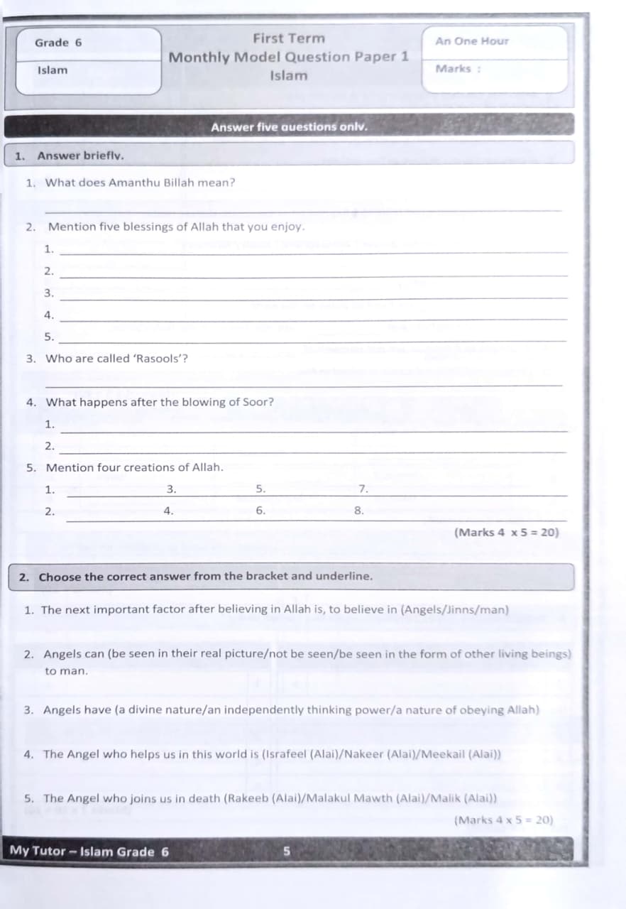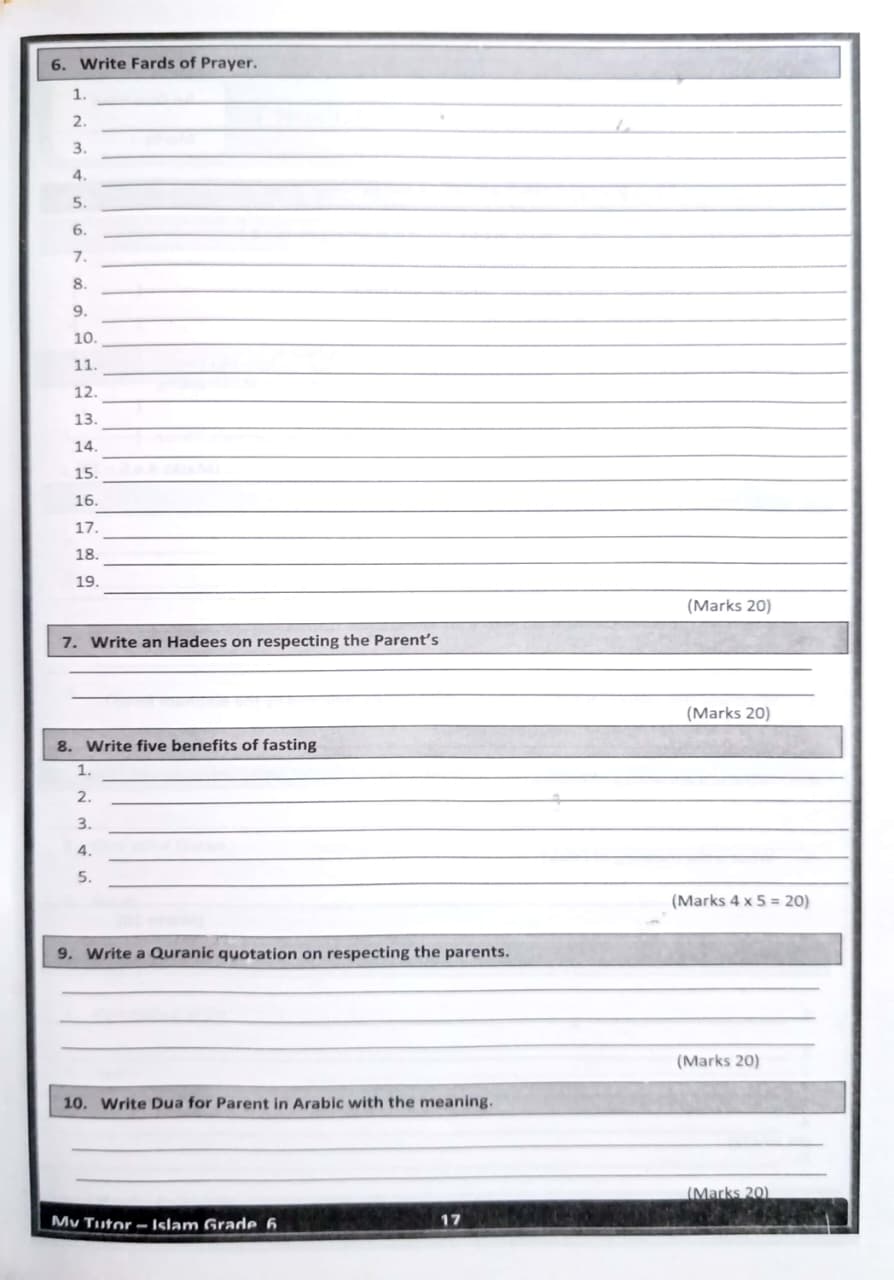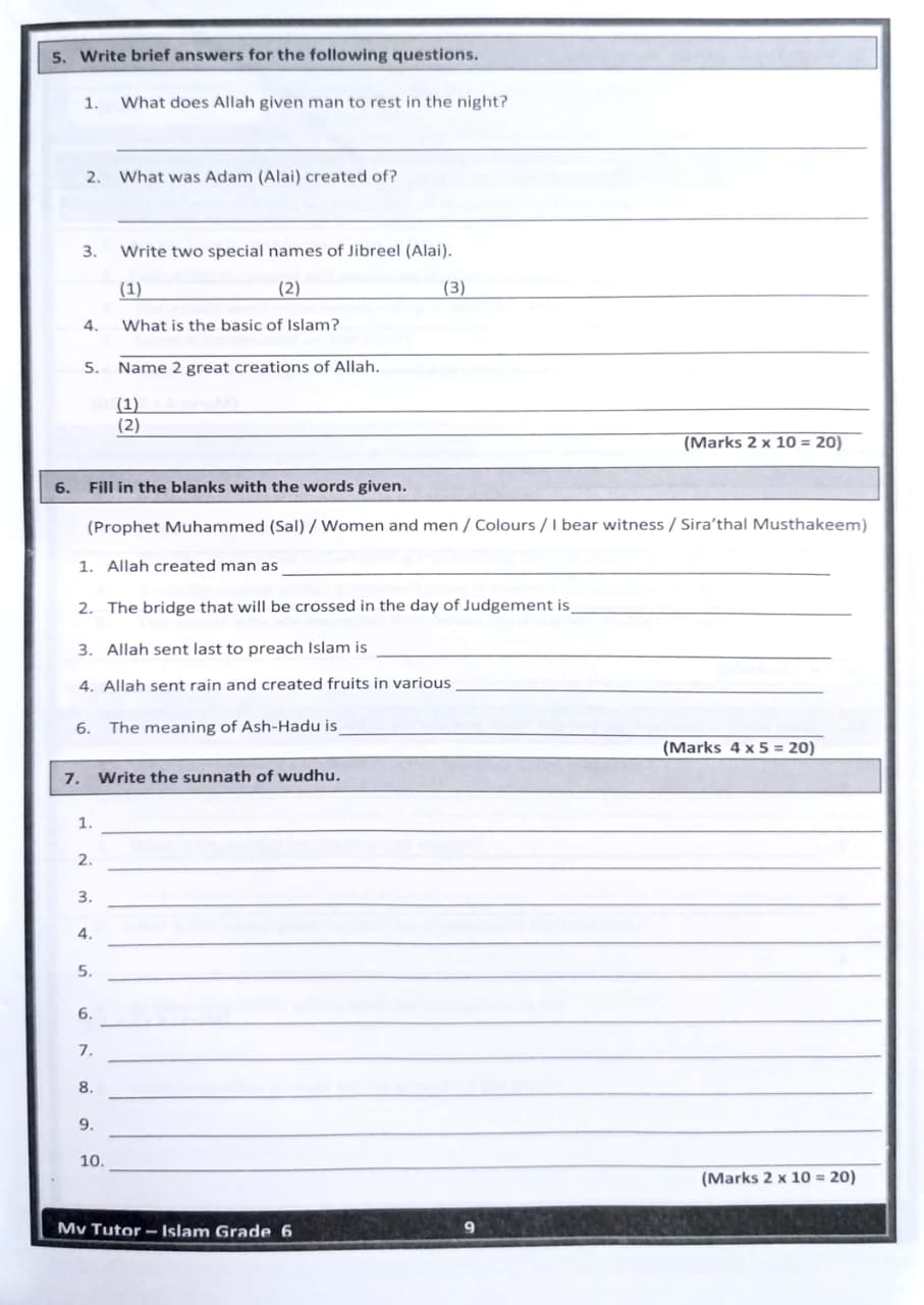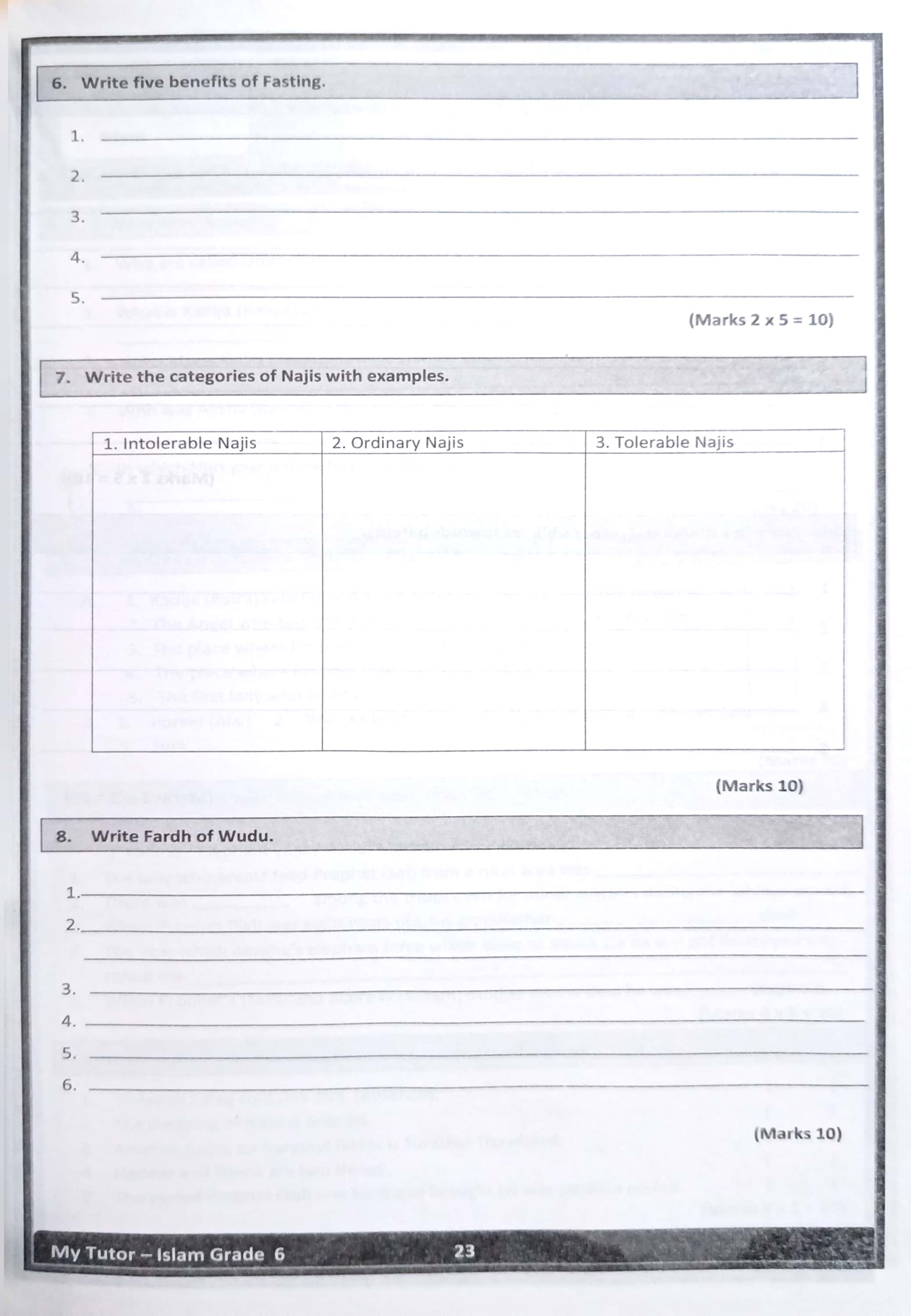 MY TUTOR GRADE 6 ISLAM WORK BOOK