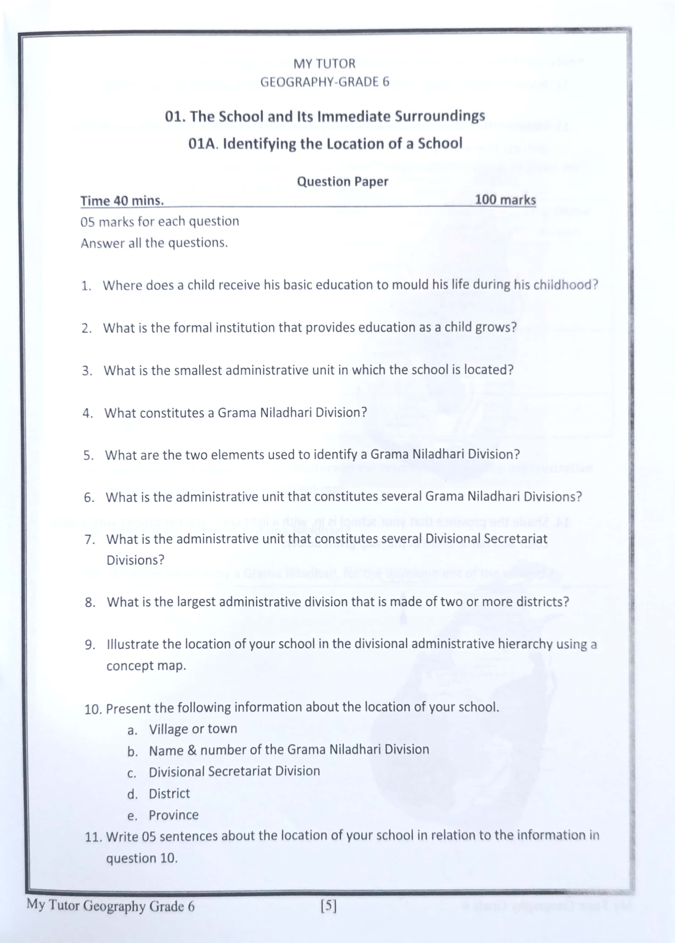 • Grade: Grade 06 - 06 ශ්‍රේණිය