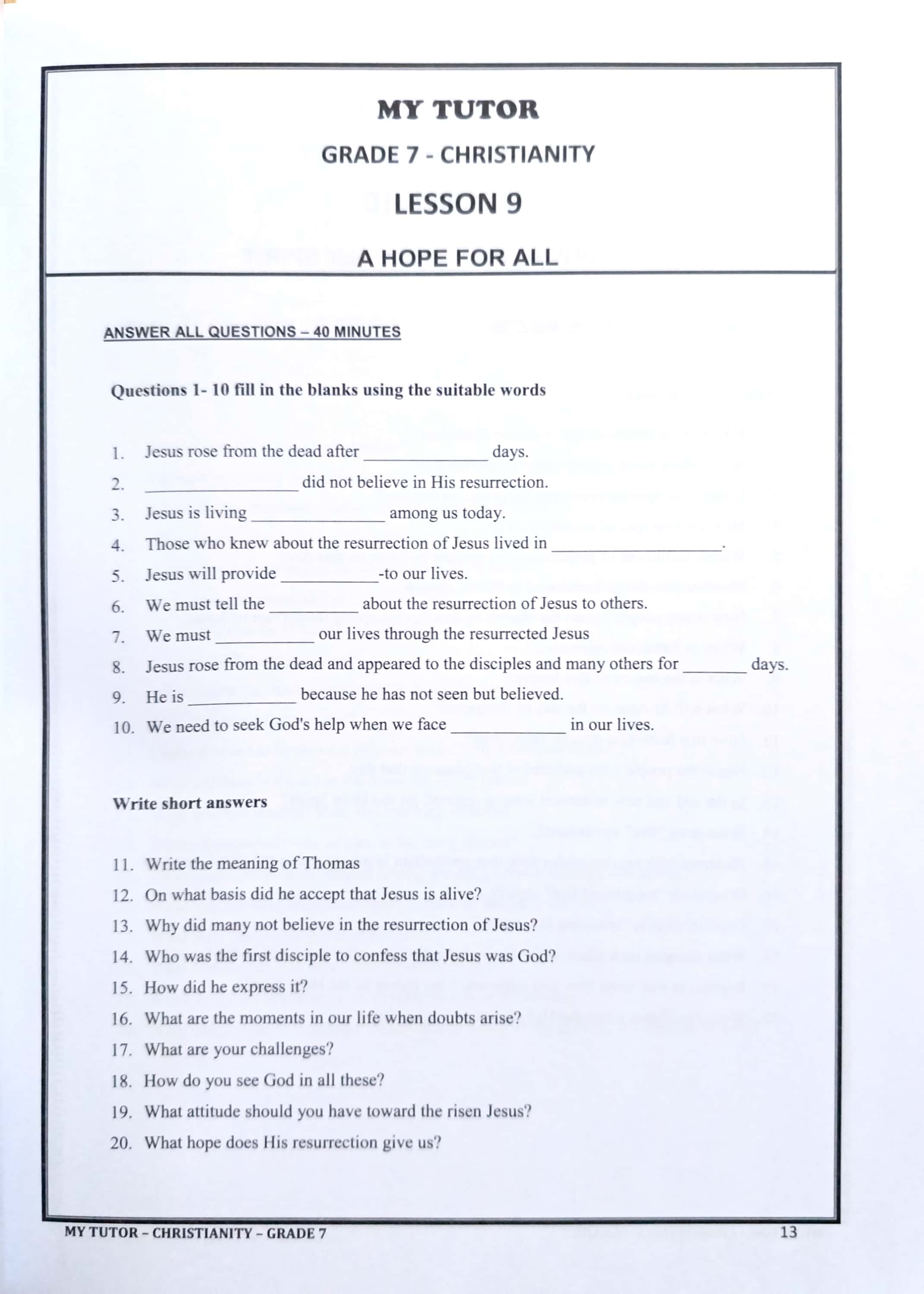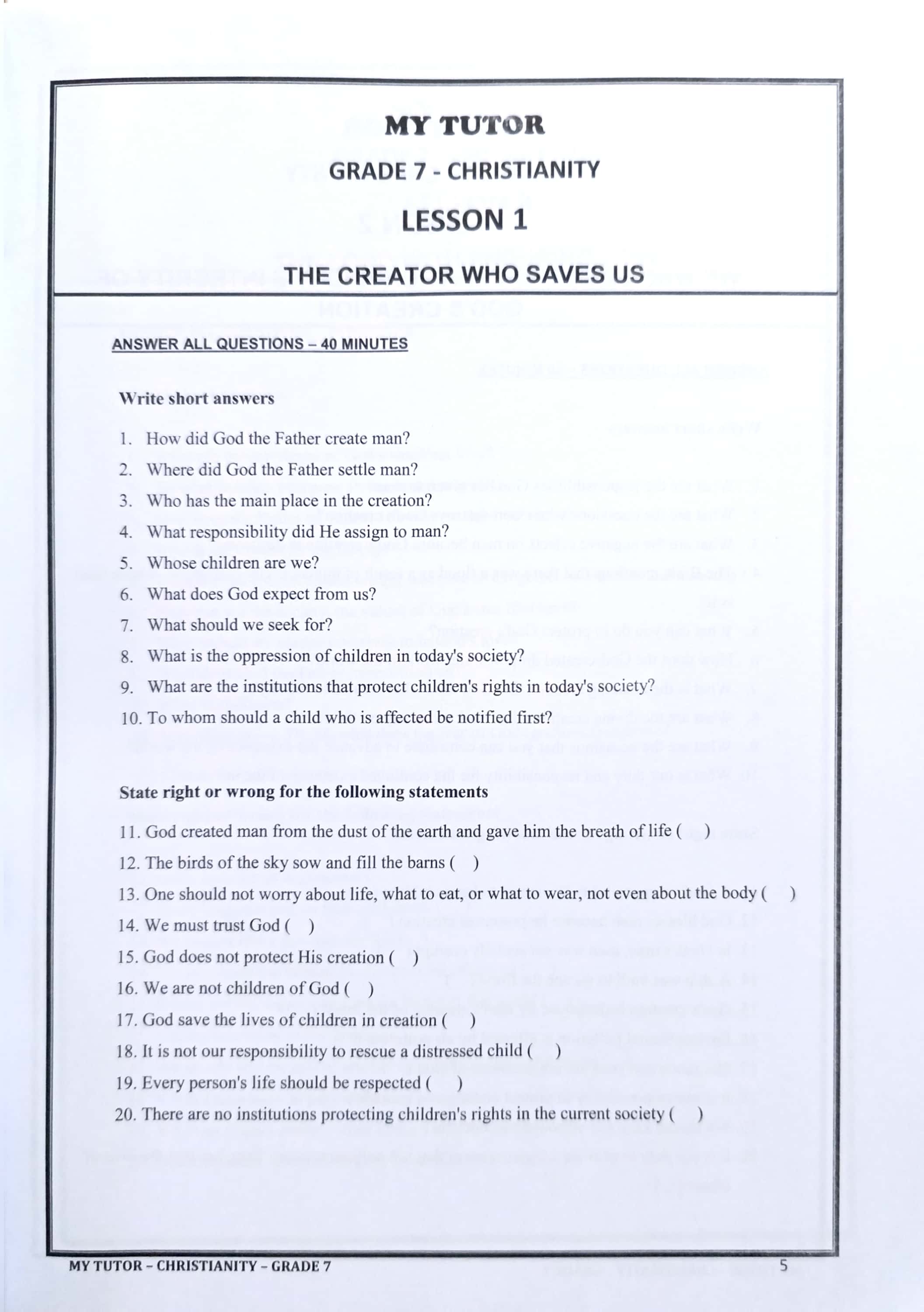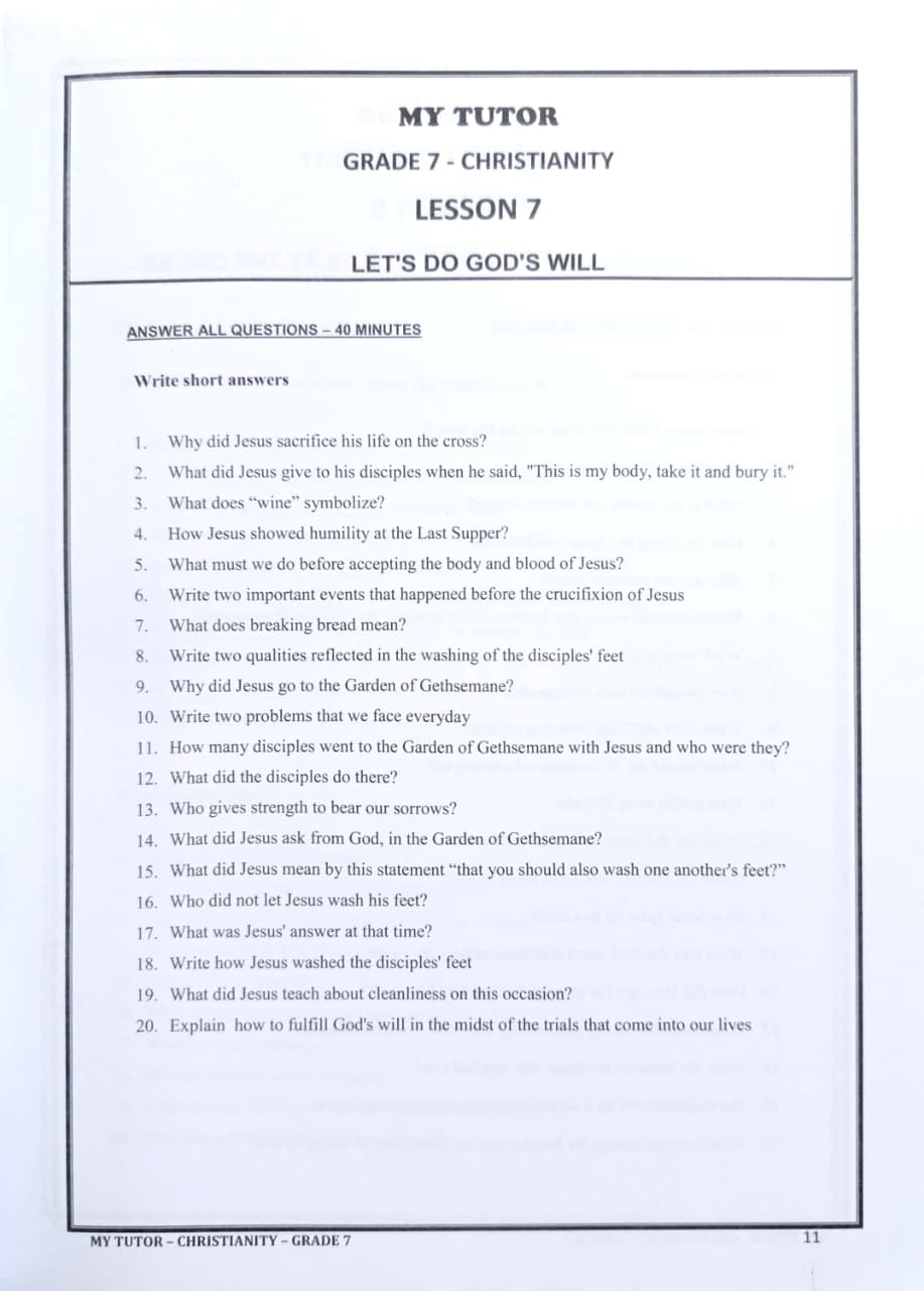MY TUTOR GRADE 7 CHRISTIANITY WORK BOOK