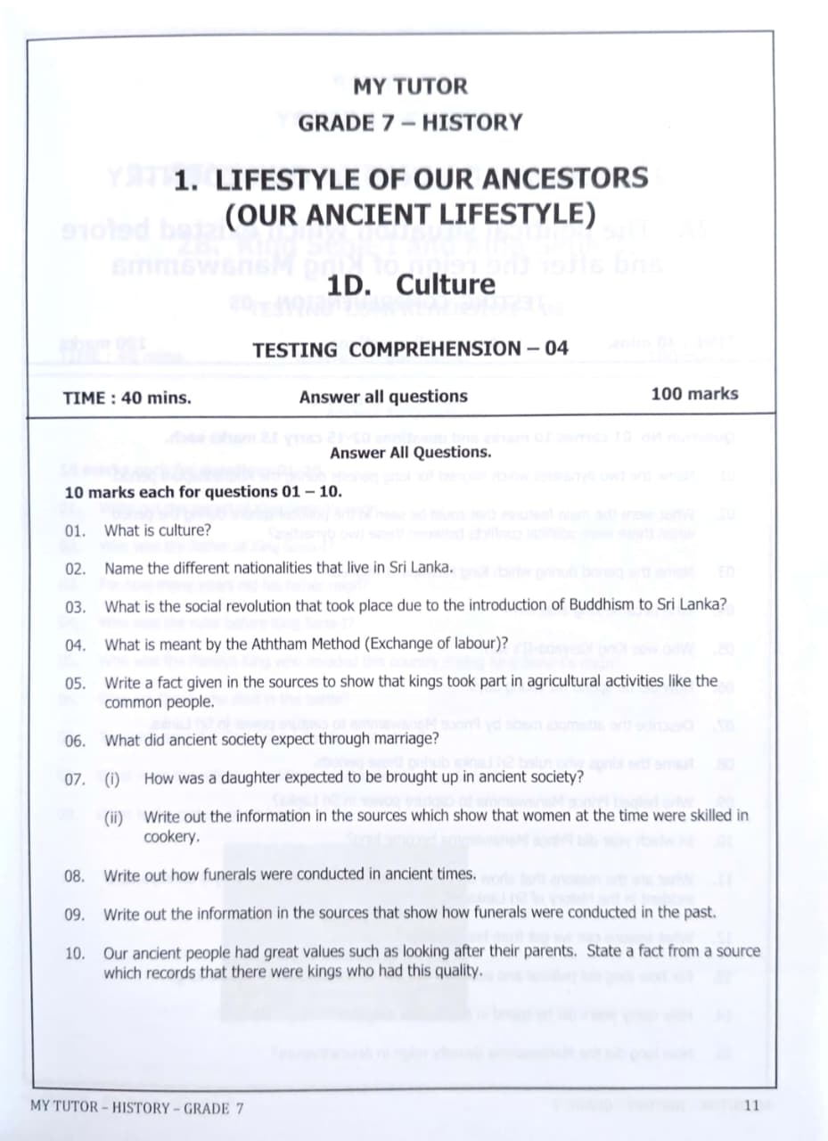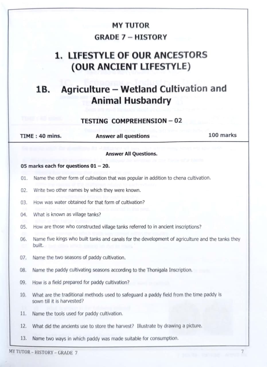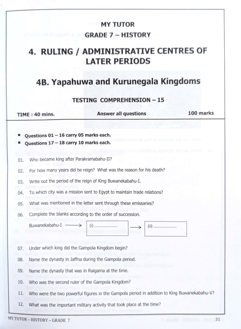 • Grade: Grade 07 - 07 ශ්‍රේණිය