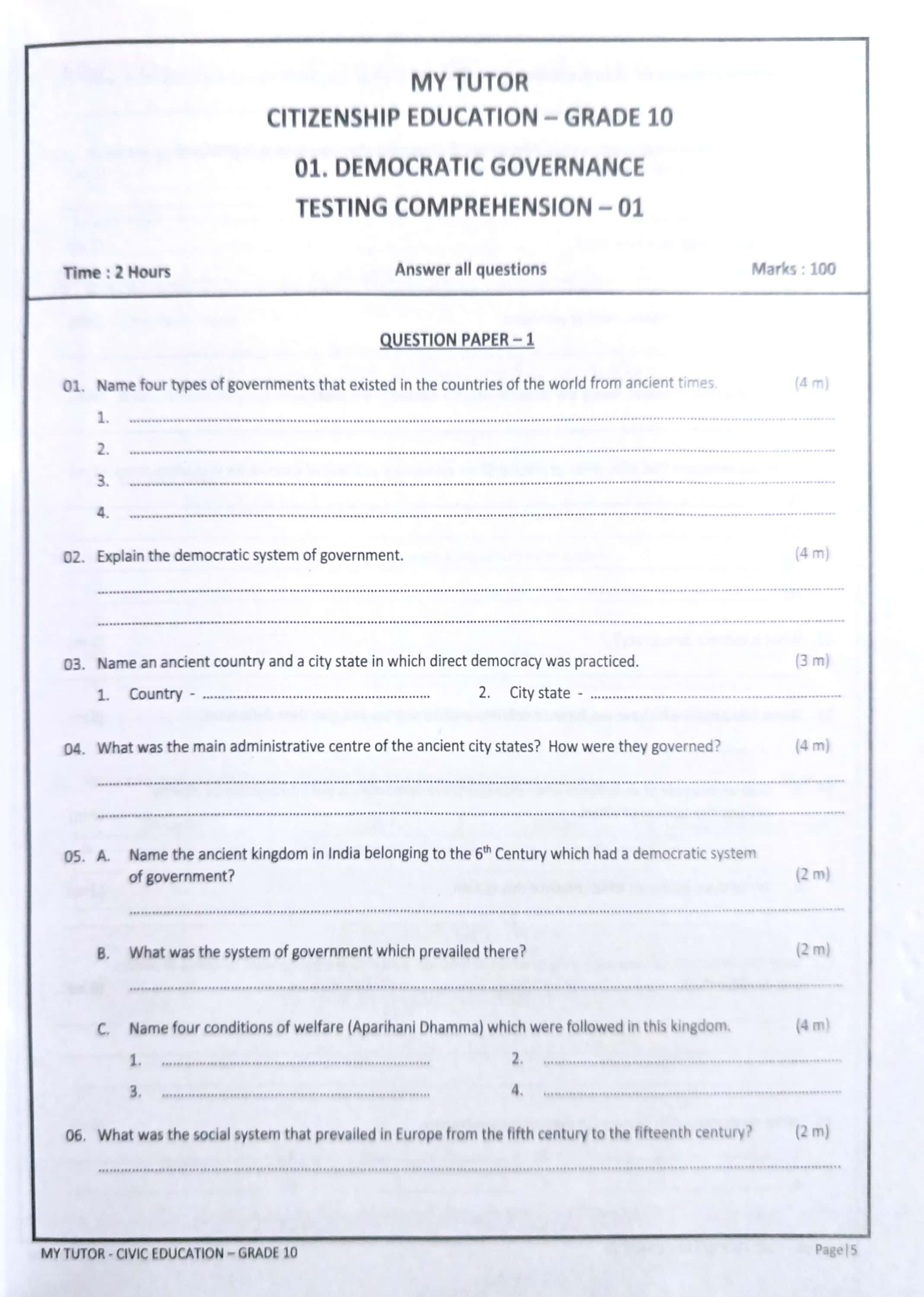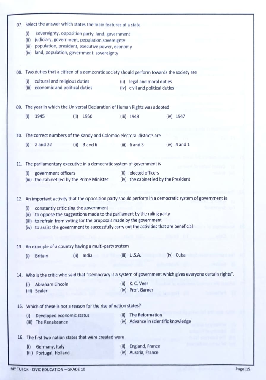 • Grade: Grade 10 - 10 ශ්‍රේණිය