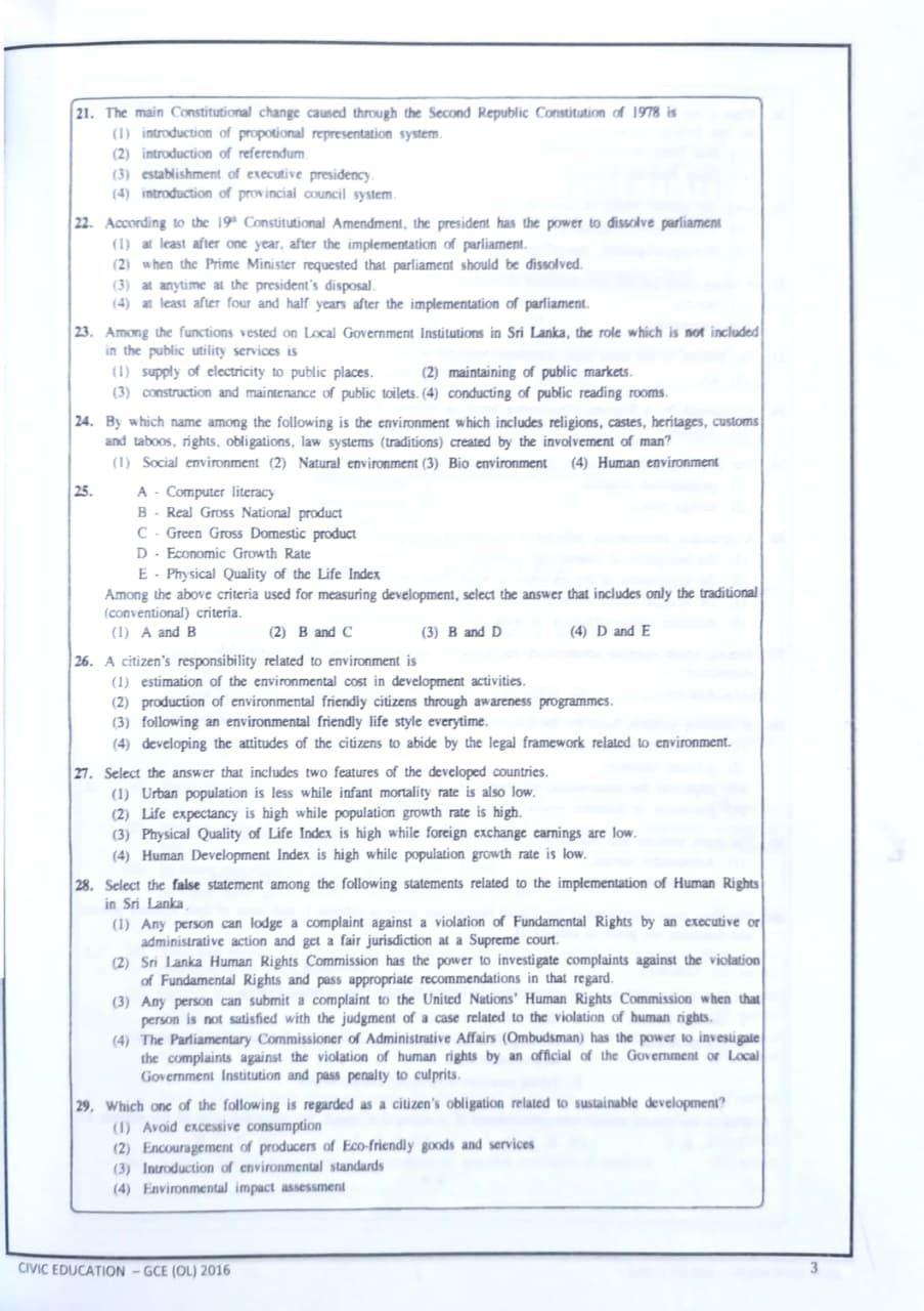 • Grade: Grade 11 - 11 ශ්‍රේණිය
