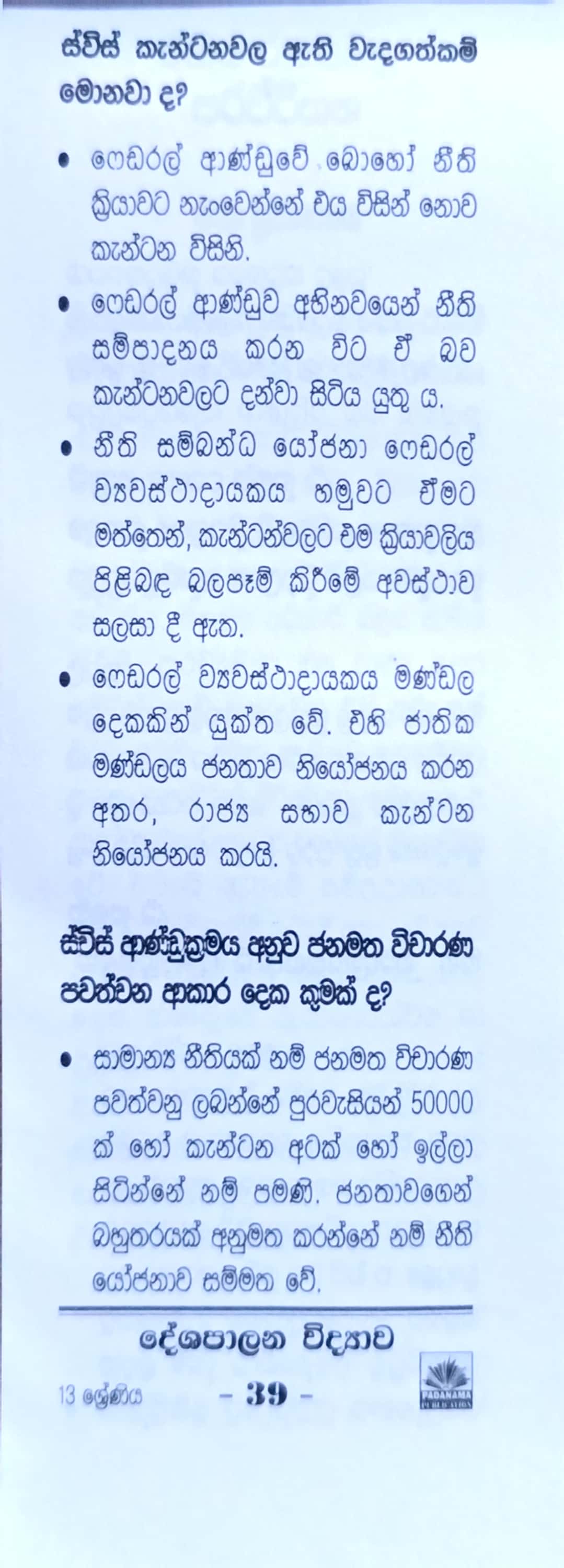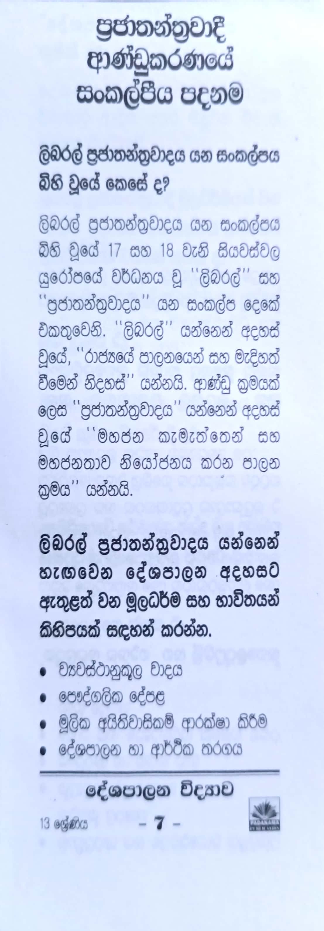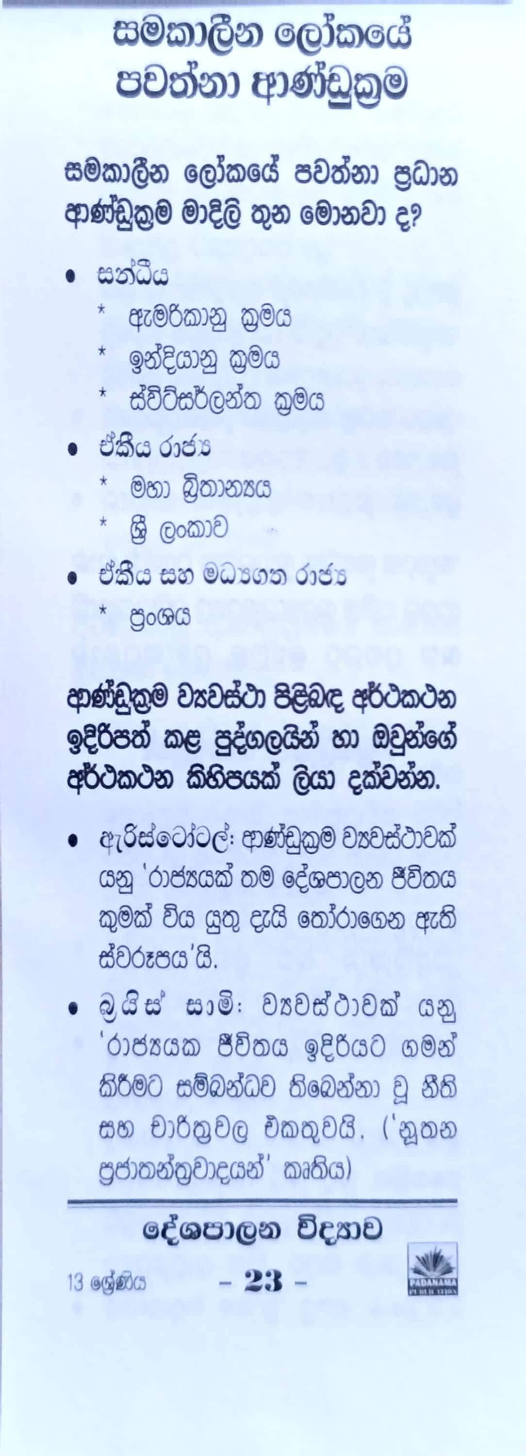 • Subject: දේශපාලන විද්‍යාව