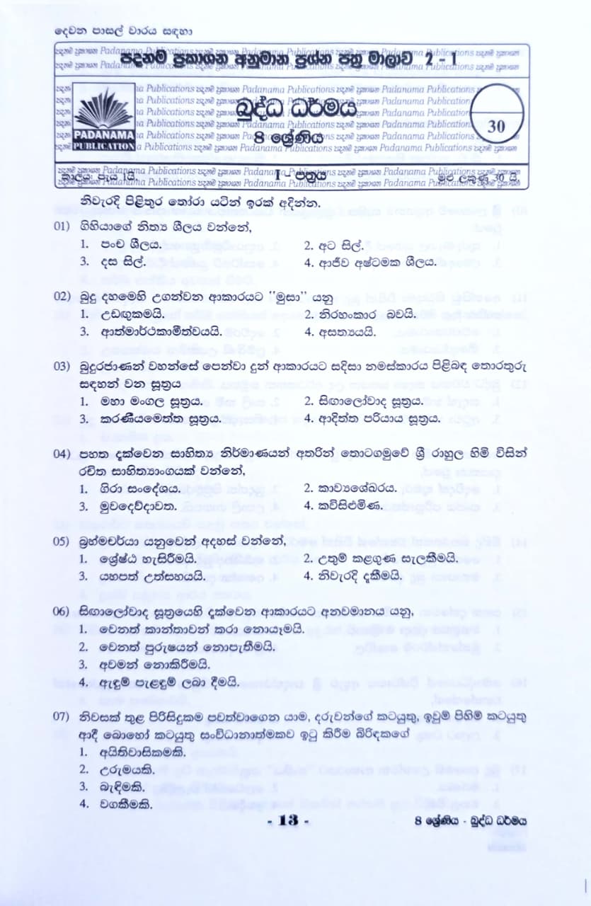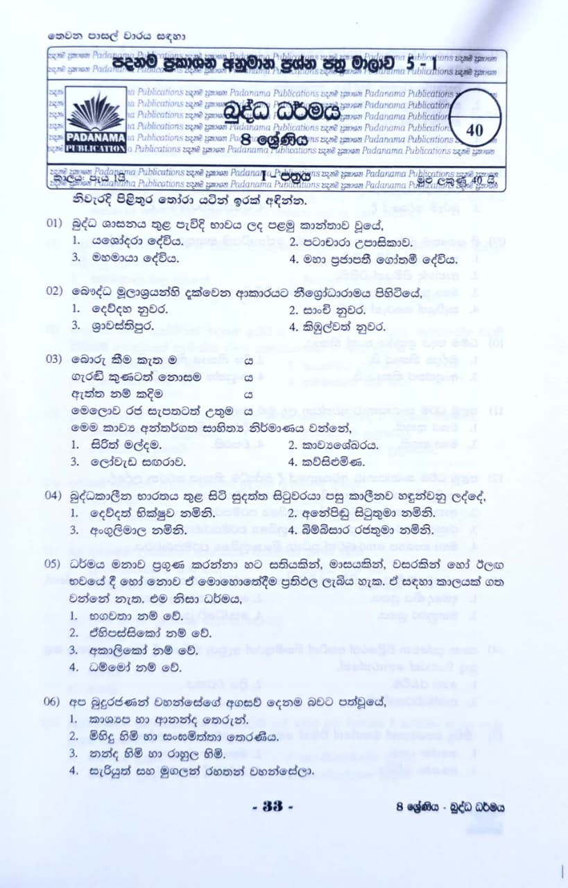 8 ශ්‍රේණිය බුද්ධ ධර්මය ප්‍රශ්නෝත්තර විශ්ලේෂණ සංග්‍රහය