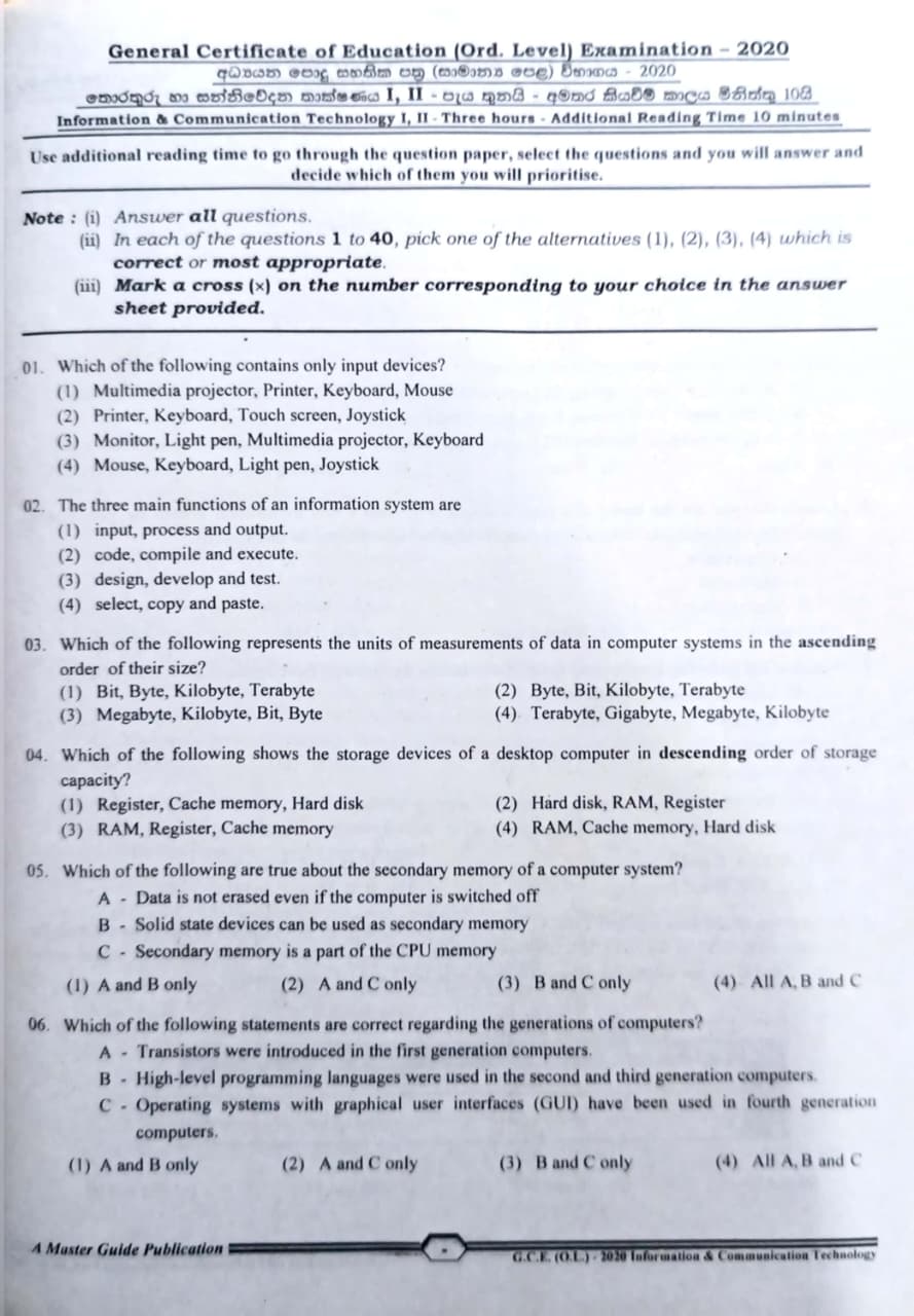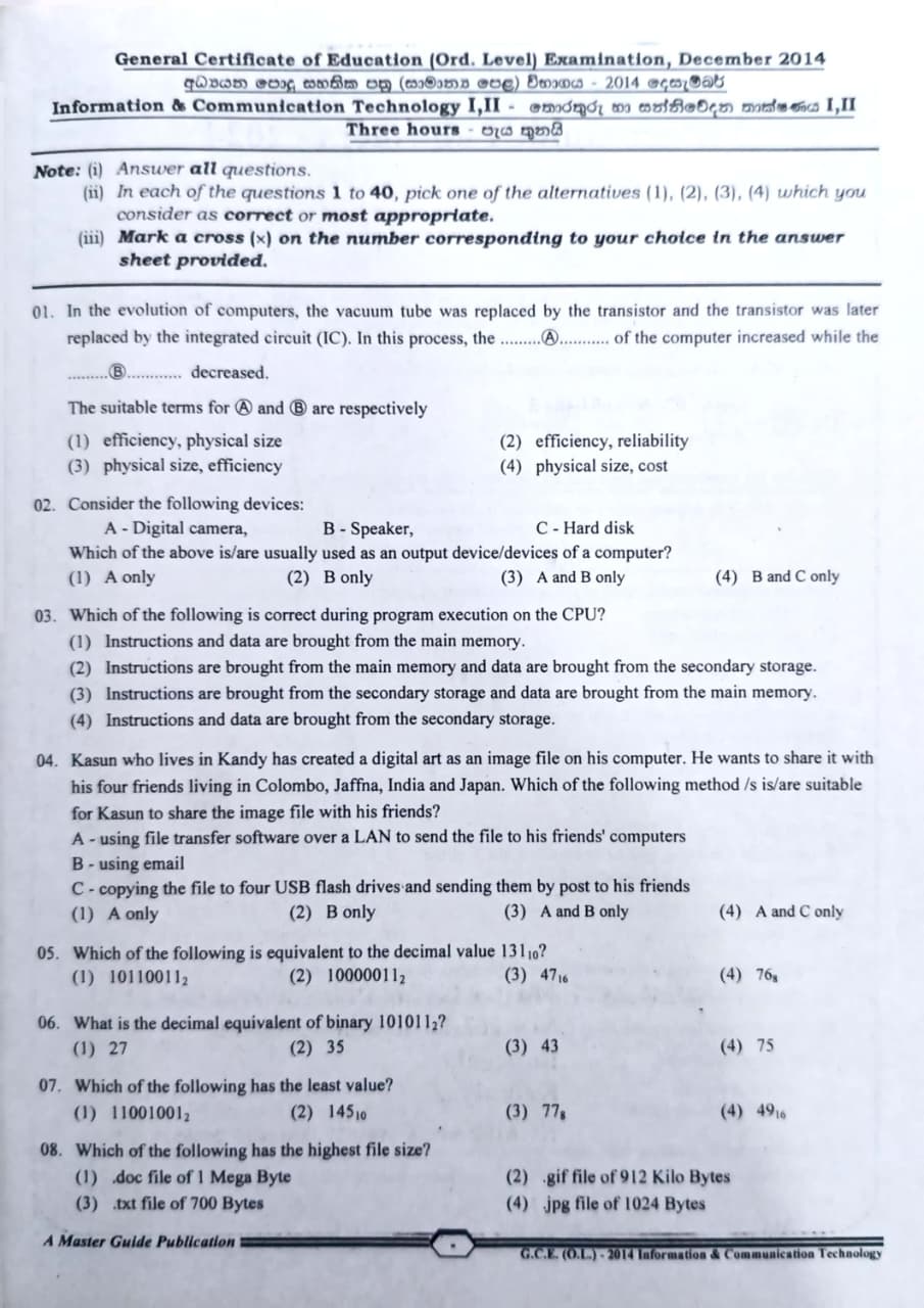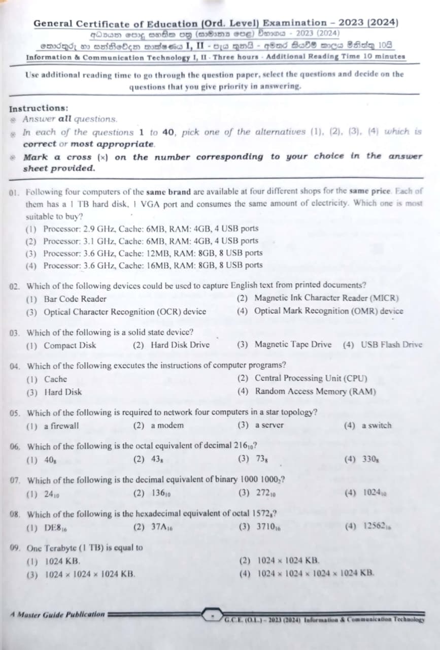 G.C.E OL Information and Communication Technology