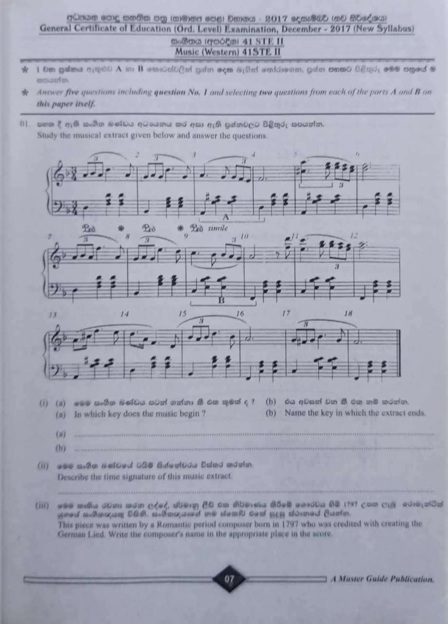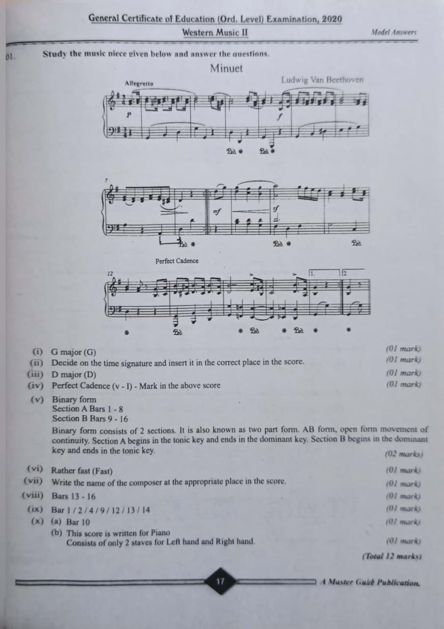 G.C.E OL Western Music Past Paper and Answer Master Guide